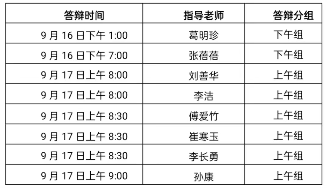 四、答辯日期如下,具體的答辯開(kāi)始時(shí)間、答辯分組: