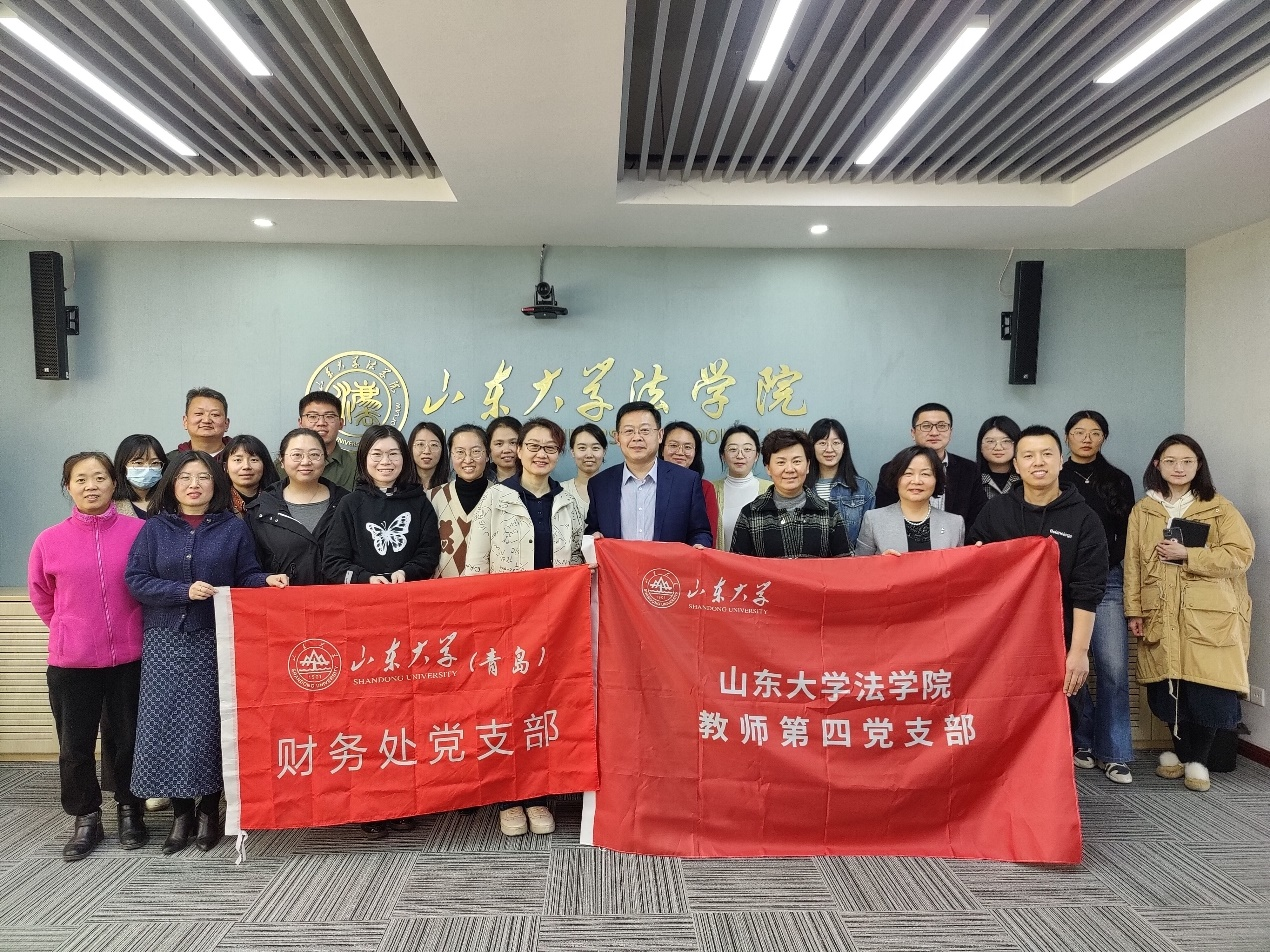 為深入學(xué)習(xí)貫徹黨的二十大,二十屆一中、二中全會(huì)精神,3月9日,法學(xué)院教師第四黨支部與青島校區(qū)財(cái)務(wù)處黨支部聯(lián)合開(kāi)展“精準(zhǔn)服務(wù)強(qiáng)學(xué)院,法治思想促發(fā)展”主題黨日活動(dòng)。法學(xué)院黨委書(shū)記于向明、黨委副書(shū)記董雪梅、副處級(jí)組織員江小荃,青島校區(qū)財(cái)務(wù)處副處長(zhǎng)、黨支部書(shū)記劉仁芝出席活動(dòng)。