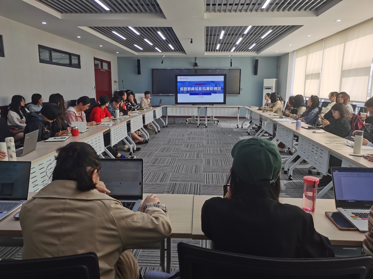 與會(huì)人員重點(diǎn)學(xué)習(xí)了習(xí)近平對(duì)宣傳思想文化工作作出的重要指示。隨后,董雪梅作了校園新聞寫(xiě)作培訓(xùn)。首先,她指出新時(shí)代宣傳工作者要堅(jiān)持以習(xí)近平新時(shí)代中國(guó)特色社會(huì)主義思想統(tǒng)攬新聞宣傳工作全局,提高政治站位,保證校園宣傳工作的政治性和時(shí)效性。融媒體時(shí)代對(duì)宣傳工作者提出了新的要求,要找準(zhǔn)宣傳角度、善用宣傳平臺(tái)、靈活報(bào)道方式、確保稿件質(zhì)量。其次,對(duì)于校園新聞寫(xiě)作規(guī)范,她結(jié)合實(shí)際案例,從新聞稿的基本結(jié)構(gòu)、基本要素和校園新聞寫(xiě)作特點(diǎn)進(jìn)行了深入講解。最后,她介紹了校園活動(dòng)攝影要注意的有關(guān)事項(xiàng),要注重?cái)z影的時(shí)效性、真實(shí)性和美感,要做好攝影的前期準(zhǔn)備,注意不同攝影場(chǎng)景的拍攝角度。江小荃結(jié)合自身攝影實(shí)踐,從攝影的前期準(zhǔn)備、如何提高攝影作品質(zhì)量等方面交流了經(jīng)驗(yàn)。