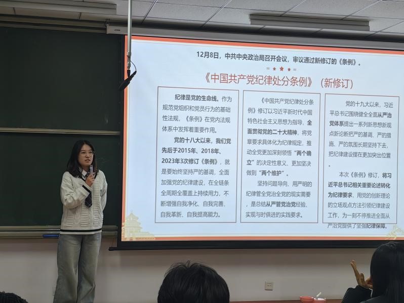 2月29日,法學院法律碩士(非法學)第二黨支部開展“明紀申律正衣冠,從嚴治黨成方圓”主題黨日活動。活動由黨支部書記范艷華主持,30余名學生黨員、團員參加。