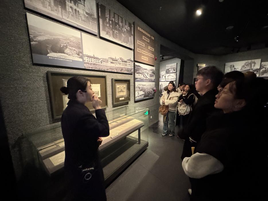 在青島一戰(zhàn)遺址博物館,同學們跟隨講解員的腳步翻開字字泣血但又催人奮進的近代歷史。博物館擁有自青島建置至主權回歸期間的各類武器、軍服、報刊、書籍、紀念章、明信片等1800多件藏品,展覽以“還我青島”為主題,分為“德占青島”“日德戰(zhàn)爭”“苦難歸程”三個部分。同學們通過參觀學習,了解到第一次世界大戰(zhàn)對中國前途命運的影響,深刻體會了“落后就要挨打”的血的教訓。