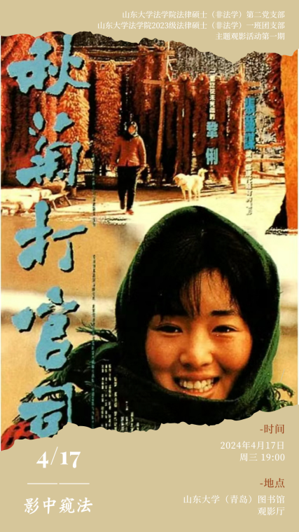 為引導(dǎo)學(xué)生從經(jīng)典影片中感受法律魅力、提升綜合法治素養(yǎng),4月17日,法學(xué)院法律碩士(非法學(xué))第二黨支部聯(lián)合班級(jí)團(tuán)支部開展“影”中窺法系列觀影活動(dòng)第一期——《秋菊打官司》,支部20余名學(xué)生黨員、團(tuán)員參加了本次活動(dòng)。