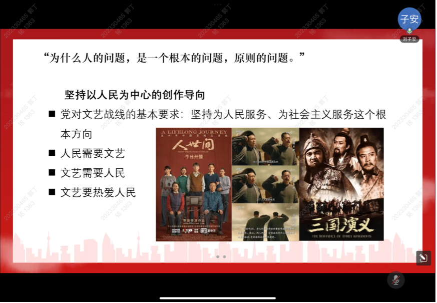 在閱讀《在文藝工作座談會上的講話》原文后,與會同志選擇了“創(chuàng)作無愧于時代的優(yōu)秀作品”和“堅持以人民為中心的創(chuàng)作導(dǎo)向”兩個問題進行深入研討。大家深刻認識到,文藝事業(yè)是黨和人民的重要事業(yè),文藝戰(zhàn)線是黨和人民的重要戰(zhàn)線。文藝是時代前進的號角,最能代表一個時代的風貌,最能引領(lǐng)一個時代的風氣。