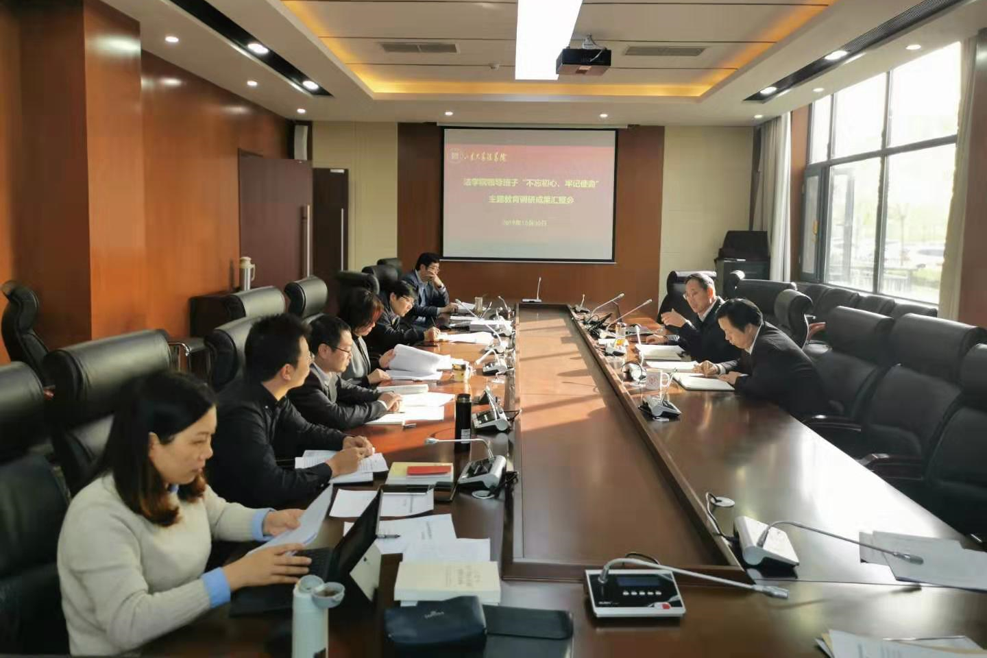 10月30日下午,學(xué)院舉行主題教育專題調(diào)研成果匯報會,就前期“不忘初心、牢記使命”主題教育的調(diào)研成果進(jìn)行匯報交流。法學(xué)院黨委委員、主題教育領(lǐng)導(dǎo)小組和工作小組成員參加了會議,會議由青島校區(qū)黨工委副書記、紀(jì)工委書記、法學(xué)院黨委書記杜言敏主持。