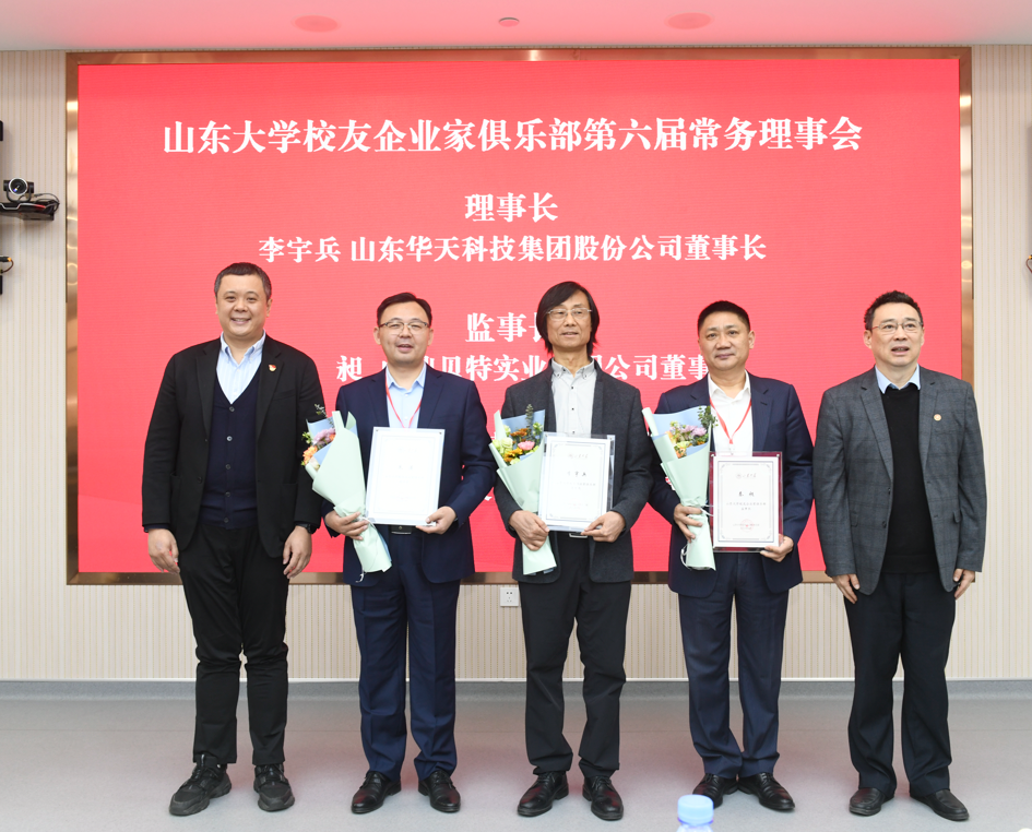 會議選舉產(chǎn)生了山東大學(xué)校友企業(yè)家俱樂部新一屆理事會,山東華天科技集團(tuán)董事長李宇兵當(dāng)選理事長,中鼎貝特實業(yè)集團(tuán)董事長秦昶當(dāng)選監(jiān)事長,政和科技股份有限公司董事長朱濤當(dāng)選常務(wù)副理事長兼秘書長,山東千慧知識產(chǎn)權(quán)集團(tuán)有限公司董事長李俠當(dāng)選常務(wù)副理事長。