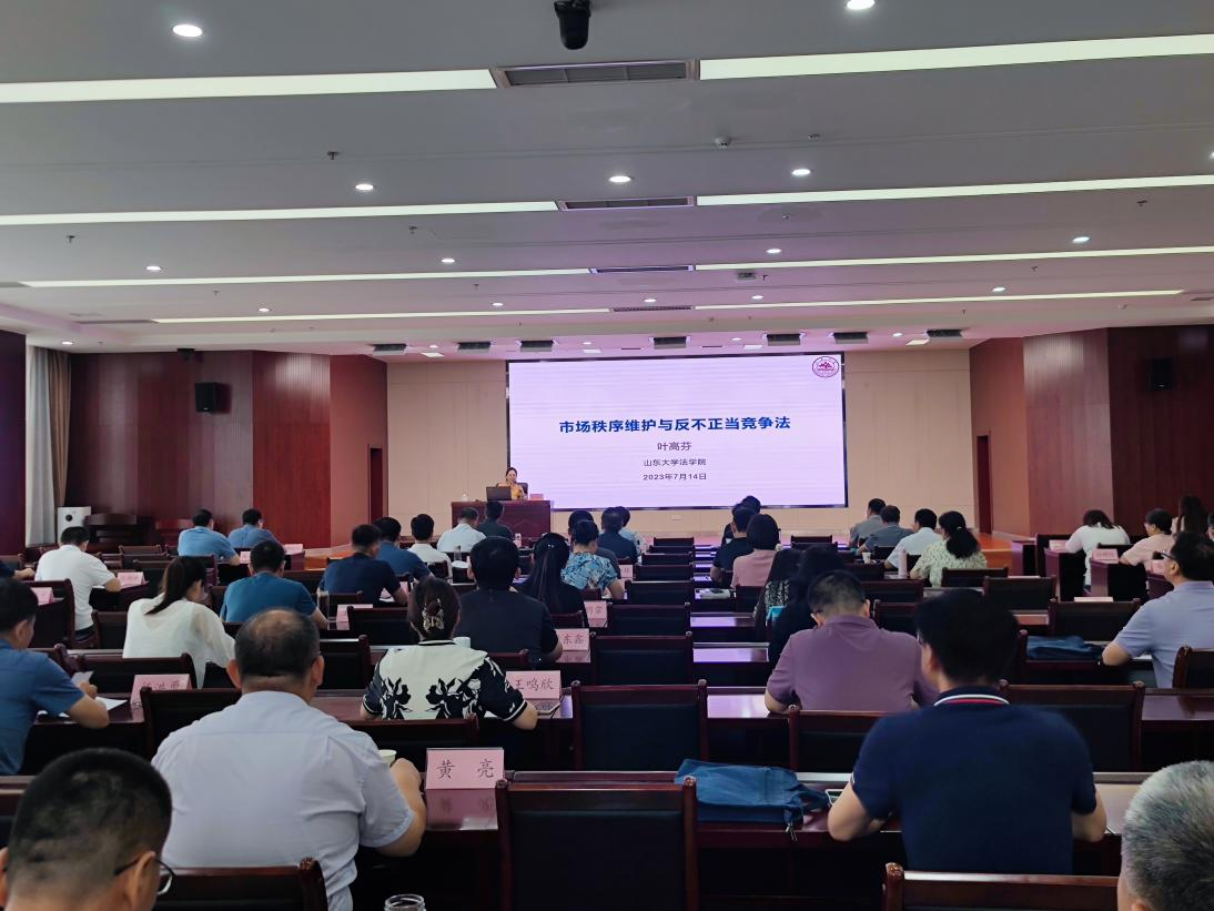 2023年7月14日,法學(xué)院研究員、山東省反壟斷法律研究和實(shí)踐基地主任葉高芬應(yīng)邀為全省市場(chǎng)監(jiān)管系統(tǒng)依法行政綜合能力提升2023年度培訓(xùn)班做專題講座。