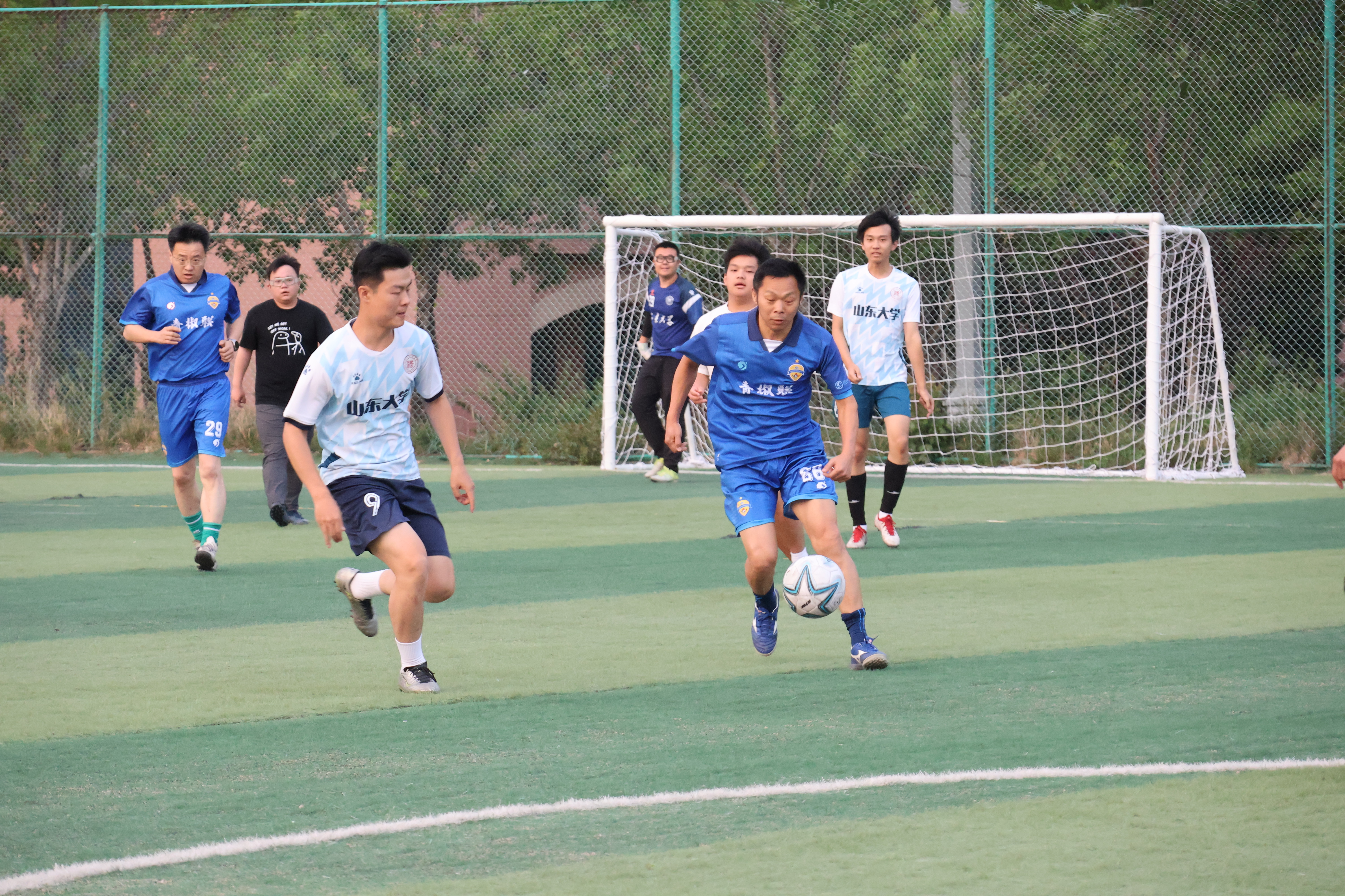 近日,山東大學法學院師生足球友誼賽在青島校區(qū)足球場順利舉行,斬獲本年度青島校區(qū)“山大杯”亞軍的法學院男子足球隊與教工聯(lián)隊展開激烈較量,呈現(xiàn)一場精彩而有意義的比賽。