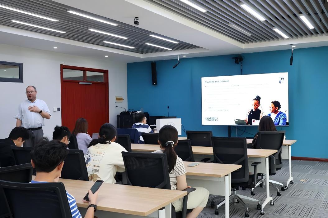 宣講環(huán)節(jié),Andrew Johnston教授從華威大學(xué)LLM項(xiàng)目的核心定位出發(fā),介紹其5個細(xì)分方向、前沿課程與小班教學(xué)等具體內(nèi)容。隨后,他指出項(xiàng)目面向法學(xué)院學(xué)生的核心優(yōu)勢,包括聯(lián)合培養(yǎng)方案、獎學(xué)金及語言要求等。最后,他強(qiáng)調(diào)項(xiàng)目就業(yè)優(yōu)勢與入學(xué)要求,并從項(xiàng)目申請、方向選擇、職業(yè)銜接等方面提出針對性建議。