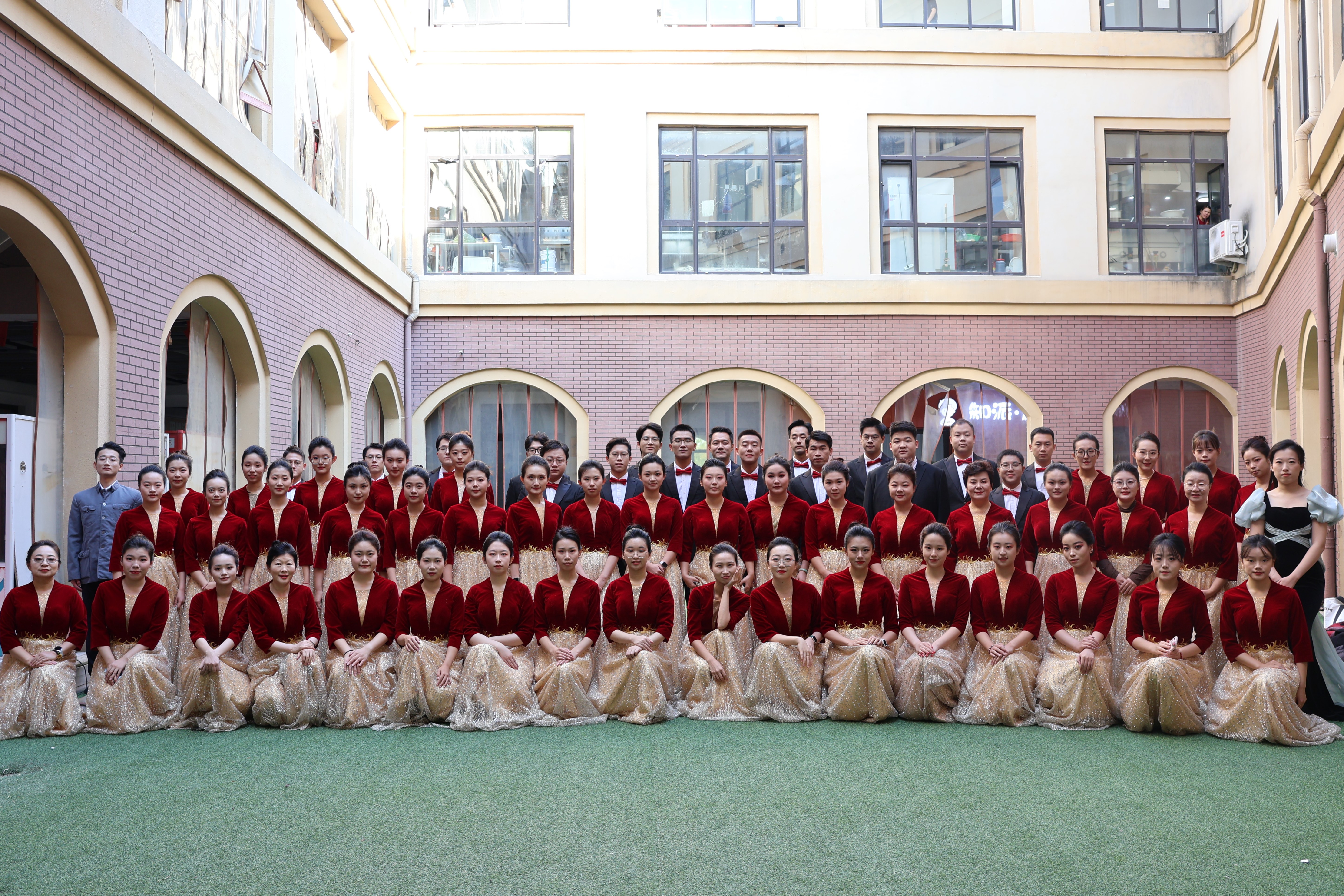 本次比賽青島校區(qū)共有十一支合唱隊伍參加。經(jīng)過抽簽排序,法學院合唱隊作為第六支隊伍登場,表演曲目為《在太行山上》與《保衛(wèi)黃河》,并采取多聲部合唱與朗誦、舞蹈結(jié)合的表演形式。學院黨委副書記董雪梅、宋繼斌等9位來自教育管理崗位與教學一線的老師和同學們一同登臺表演。