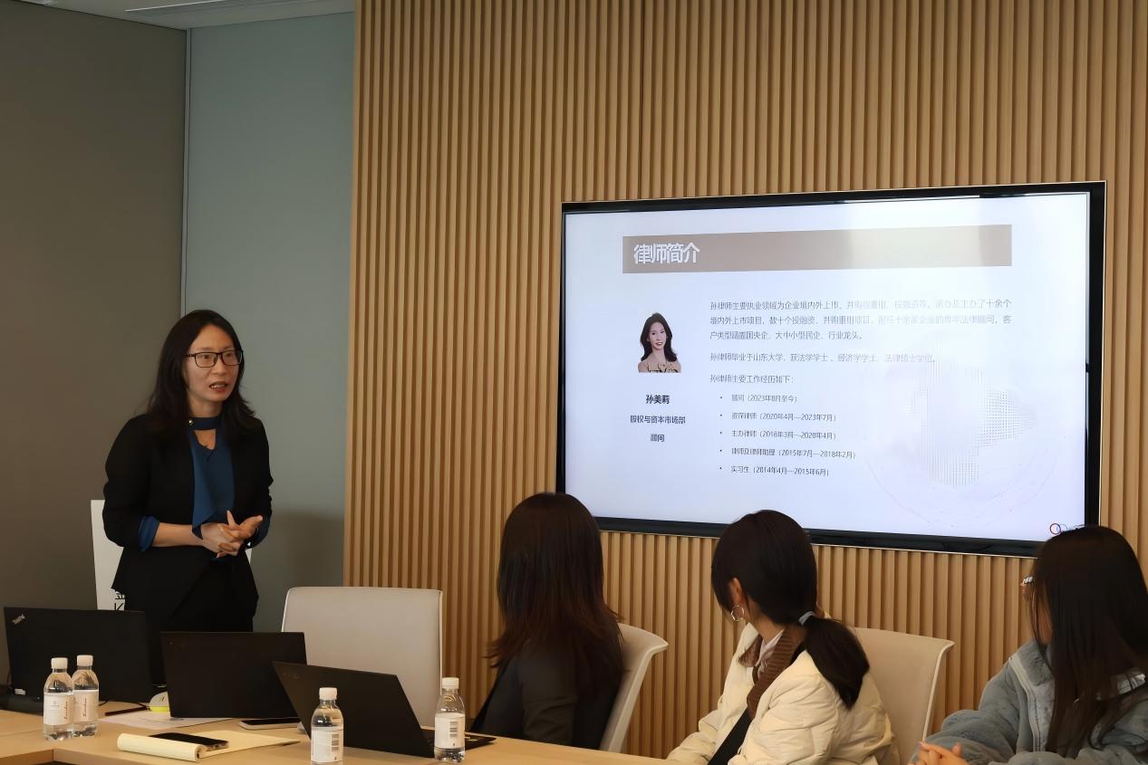 在交流階段,座談人員圍繞律師職業(yè)發(fā)展、法律素養(yǎng)提升、律所招聘條件等展開討論。葛娜娜結(jié)合自己的從業(yè)經(jīng)歷,鼓勵同學(xué)們深耕專業(yè),精準(zhǔn)識別溝通對象的核心訴求,做好預(yù)期管理。孫美莉作為山大校友分享了自己在金杜的成長經(jīng)歷,建議同學(xué)們通過有規(guī)劃的實(shí)習(xí)明確職業(yè)方向,實(shí)現(xiàn)從執(zhí)行者到解決者的思維躍遷。馬安強(qiáng)鼓勵同學(xué)們培養(yǎng)綜合能力與自驅(qū)力,肯吃苦、善鉆研。安迪推薦同學(xué)們深耕細(xì)分領(lǐng)域,打造核心競爭力,分享了金杜幫助律師發(fā)展的團(tuán)隊(duì)協(xié)作模式。馬麗介紹了金杜青島律所的選拔標(biāo)準(zhǔn)、招聘流程和簡歷投遞路徑。