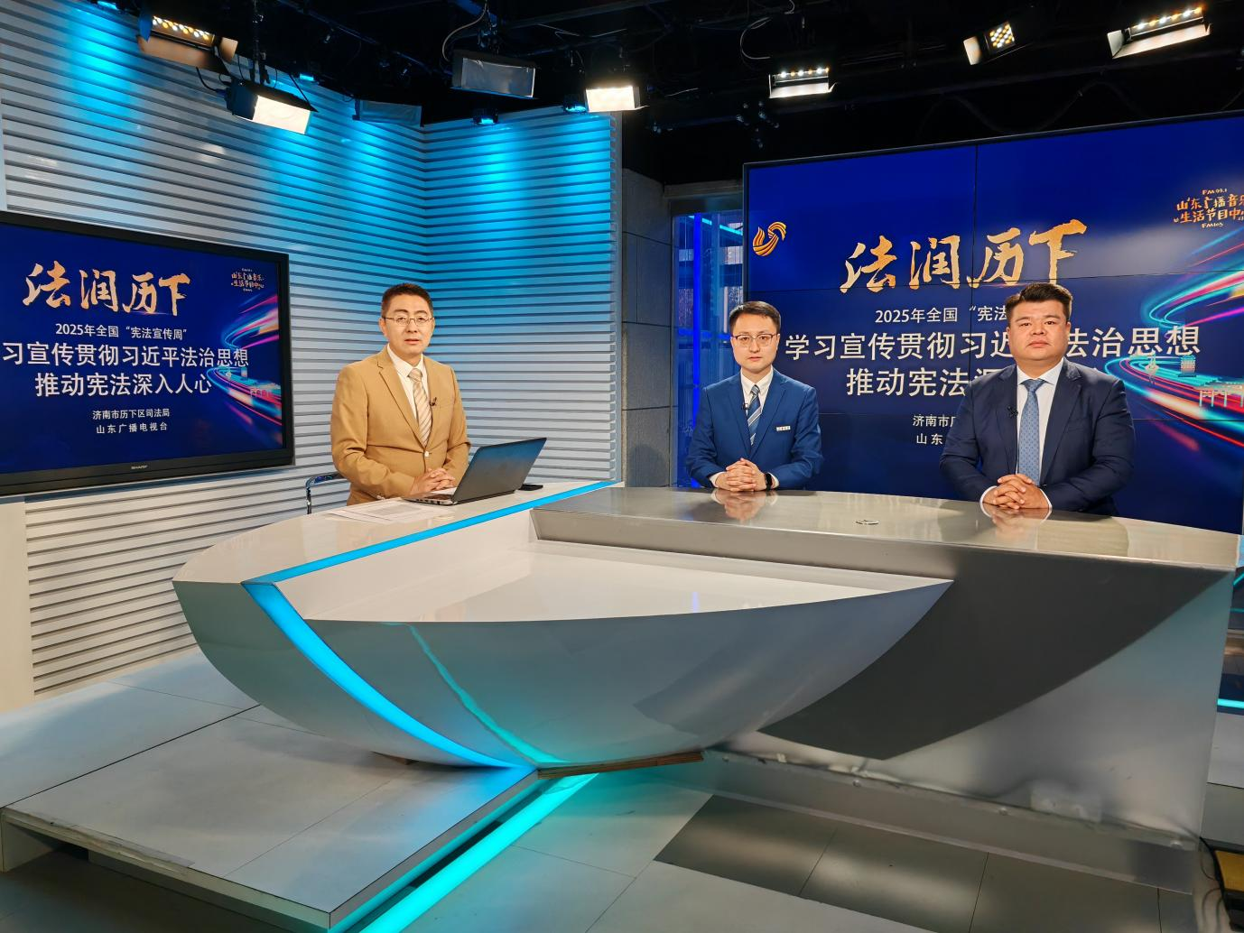 12月6日下午,歷下區(qū)司法局聯(lián)合山東廣播電視臺制作的2025年“憲法宣傳周”主題活動《法潤歷下》普法直播節(jié)目第167期順利播出。本期節(jié)目的主題為“學(xué)習(xí)貫徹習(xí)近平法治思想推動憲法深入人心”,法學(xué)院助理研究員陳偉博士擔(dān)任主講嘉賓,山東圣義(濟(jì)南自貿(mào)區(qū))律師事務(wù)所執(zhí)行主任劉誠發(fā)擔(dān)任與談嘉賓,山東廣播電視臺譚超杰擔(dān)任本期節(jié)目的主持人。