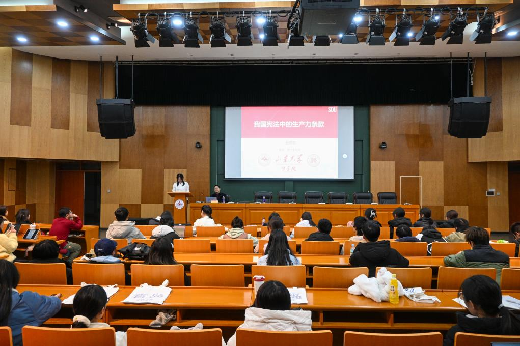 12月6日,山東大學(xué)法學(xué)院在青島校區(qū)舉辦憲法專(zhuān)題講座及主題交流活動(dòng)。活動(dòng)以“‘憲’在出發(fā) 青春同行”為主題,吸引了來(lái)自全校區(qū)不同專(zhuān)業(yè)的百余名學(xué)生參與。法學(xué)院憲法與行政法研究所所長(zhǎng)、博士生導(dǎo)師王德志教授擔(dān)任主講嘉賓。