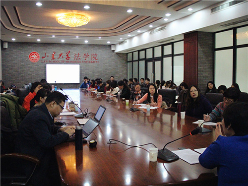 12月26日下午14點,中國政法大學教授、博士生導師兼中國婚姻家庭法學研究會會長夏吟蘭,中華女子學院書記、教授兼中國婚姻家庭法學研究會副會長李明舜,中國社會科學院社會法室主任、研究員兼中國婚姻家庭法學研究會副會長薛寧蘭應邀來到山東大學法學院逸夫法學樓一樓會議室,為我院師生帶來了一場主題為“中國民法典編纂與婚姻家庭編”的精彩報告。本次報告由山東大學法學院王麗萍教授主持,山東大學法學院康娜副教授、徐偉敏副教授,山東師范大學法學院院長王宏教授和田堯老師,山東女子學院張雅維教授參加了此次報告。