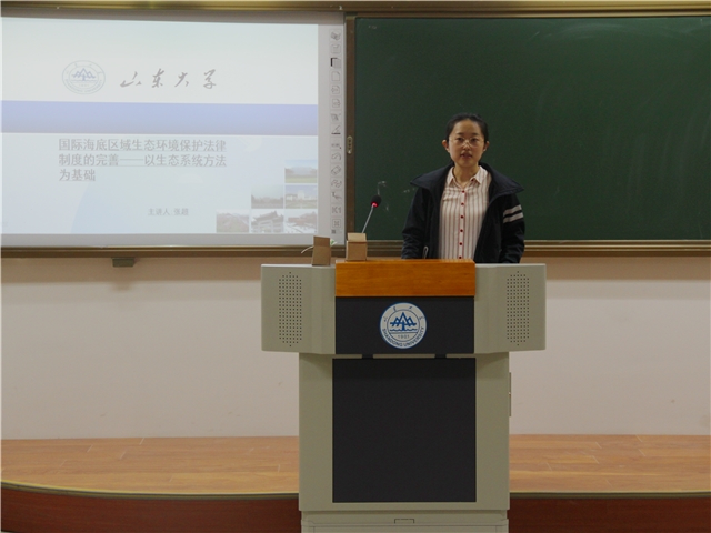 張超同學(xué)此次報(bào)告的主題為“國際海底區(qū)域生態(tài)環(huán)境保護(hù)法律制度的完善——以生態(tài)系統(tǒng)方法為基礎(chǔ)”,報(bào)告主要分為三個(gè)部分的內(nèi)容: