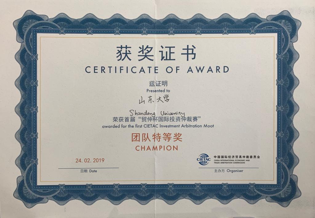 2019223日至24日,由中國(guó)國(guó)際經(jīng)濟(jì)貿(mào)易仲裁委員會(huì)主辦的首屆“貿(mào)仲杯國(guó)際投資仲裁賽”在西安交通大學(xué)舉行。經(jīng)過(guò)兩天共28場(chǎng)庭審辯論的激烈角逐,我院代表隊(duì)獲團(tuán)隊(duì)特等獎(jiǎng),摘得桂冠。