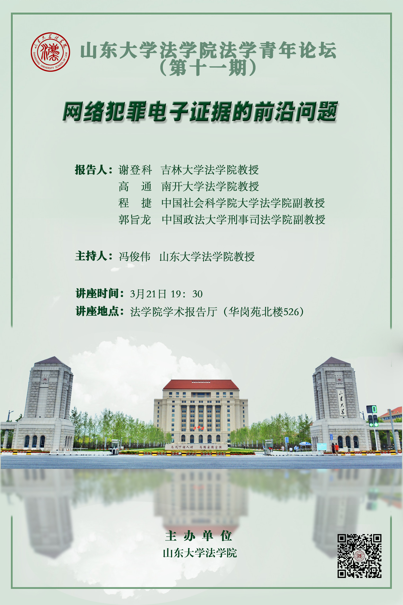 講座預(yù)告 | 山東大學(xué)法學(xué)院法學(xué)青年論壇(第十一期):網(wǎng)絡(luò)犯罪電子證據(jù)的前沿問題