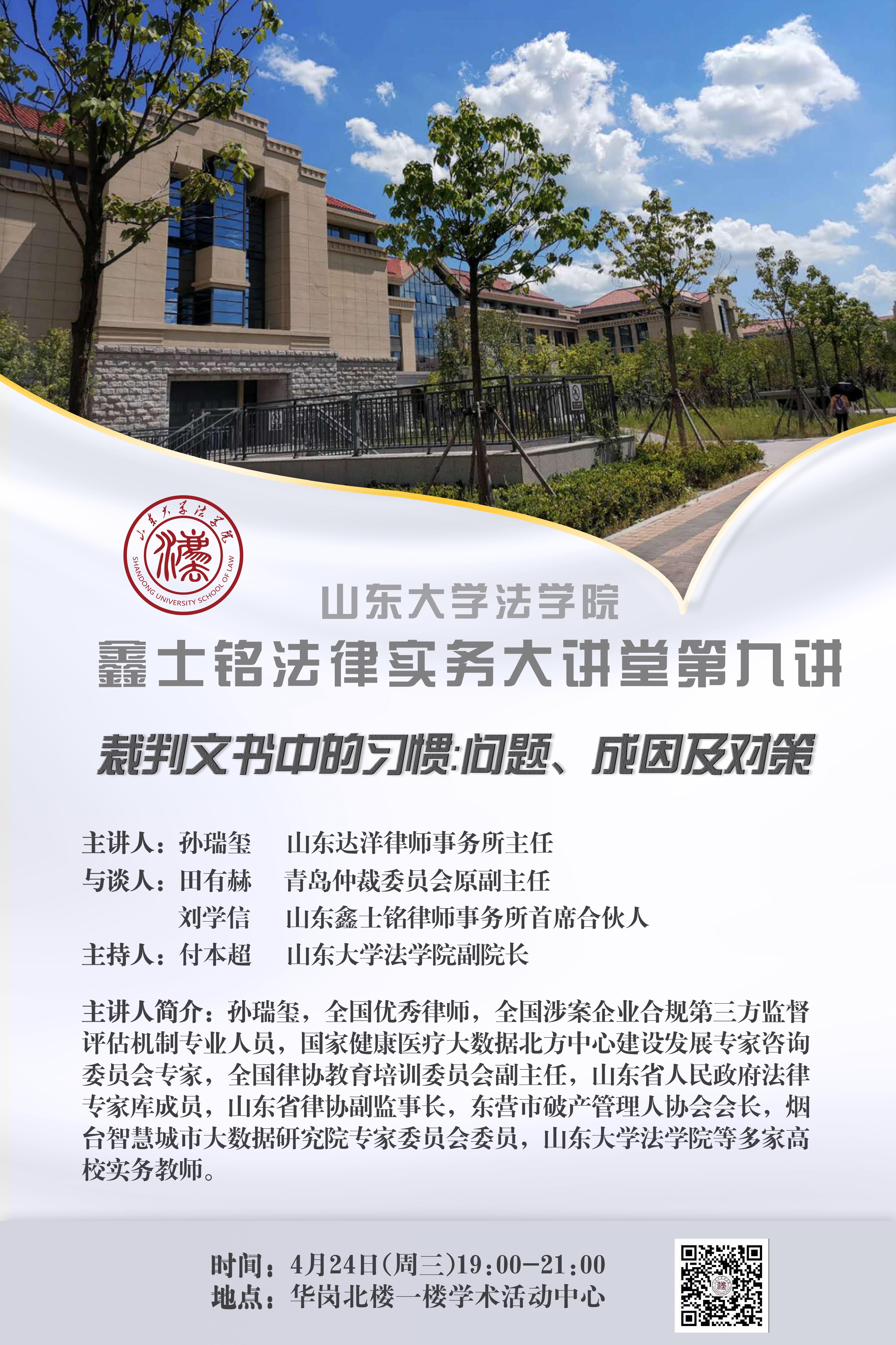 講座預(yù)告 | 山東大學(xué)法學(xué)院鑫士銘法律實(shí)務(wù)大講堂第九講——裁判文書中的習(xí)慣:?jiǎn)栴}、成因及對(duì)策
