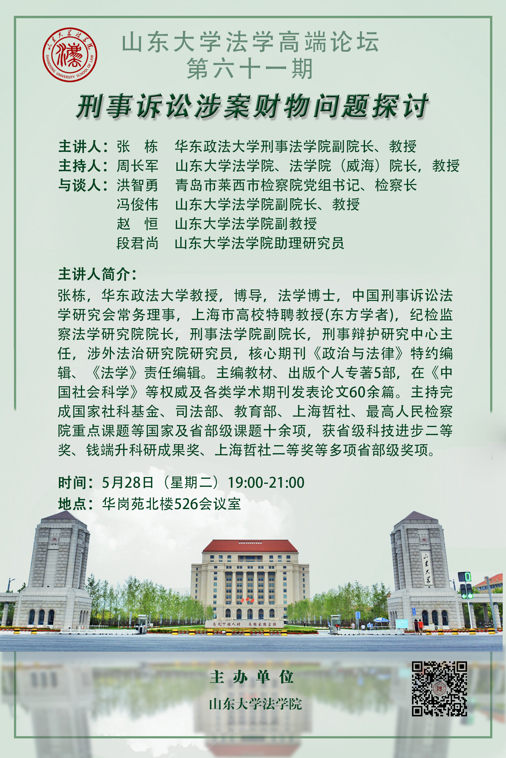 講座預(yù)告 | 山東大學(xué)法學(xué)高端論壇第六十一期:刑事訴訟涉案財(cái)物問(wèn)題探討