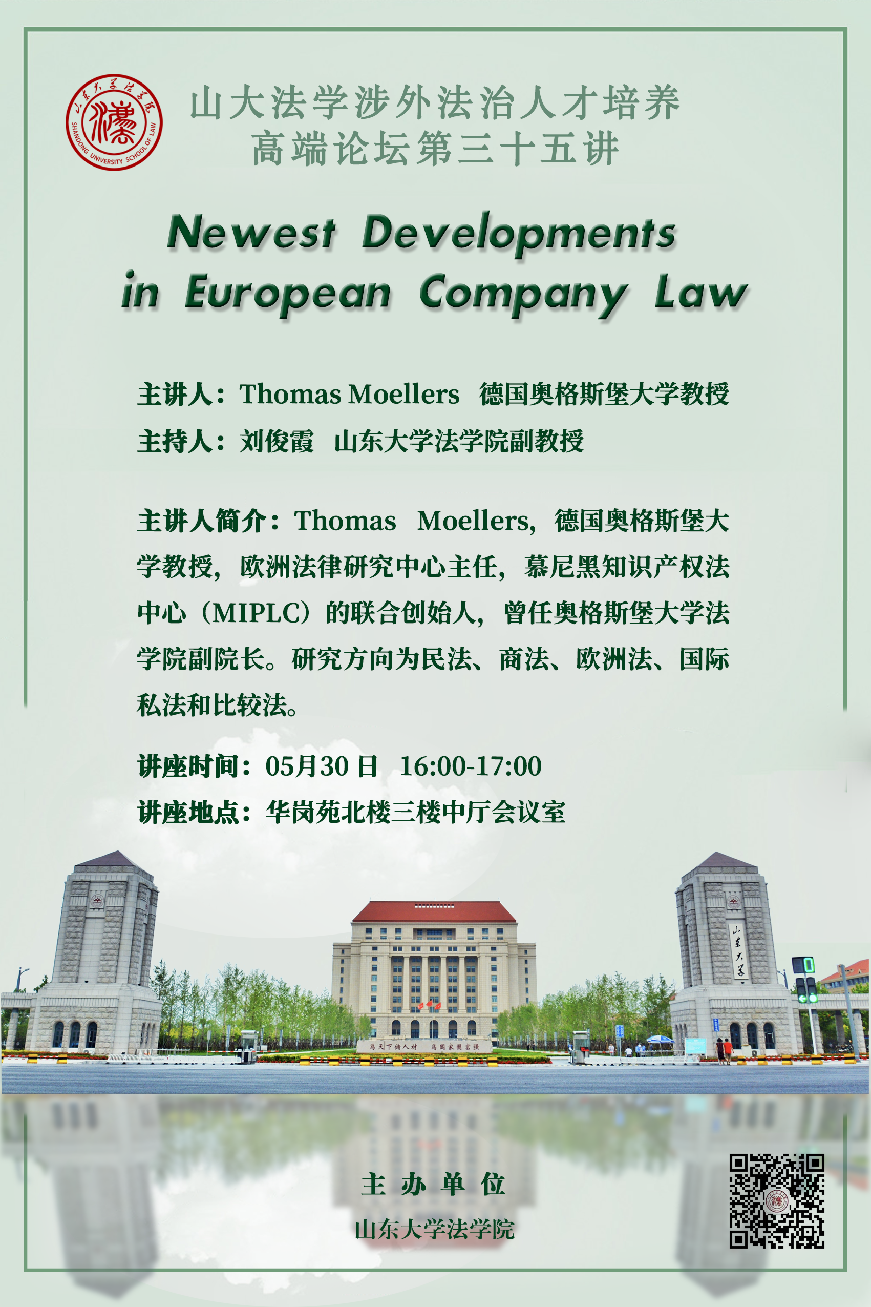講座預(yù)告 | 山大法學(xué)涉外法治人才培養(yǎng)高端論壇第三十五講:Newest Developments in European Company Law