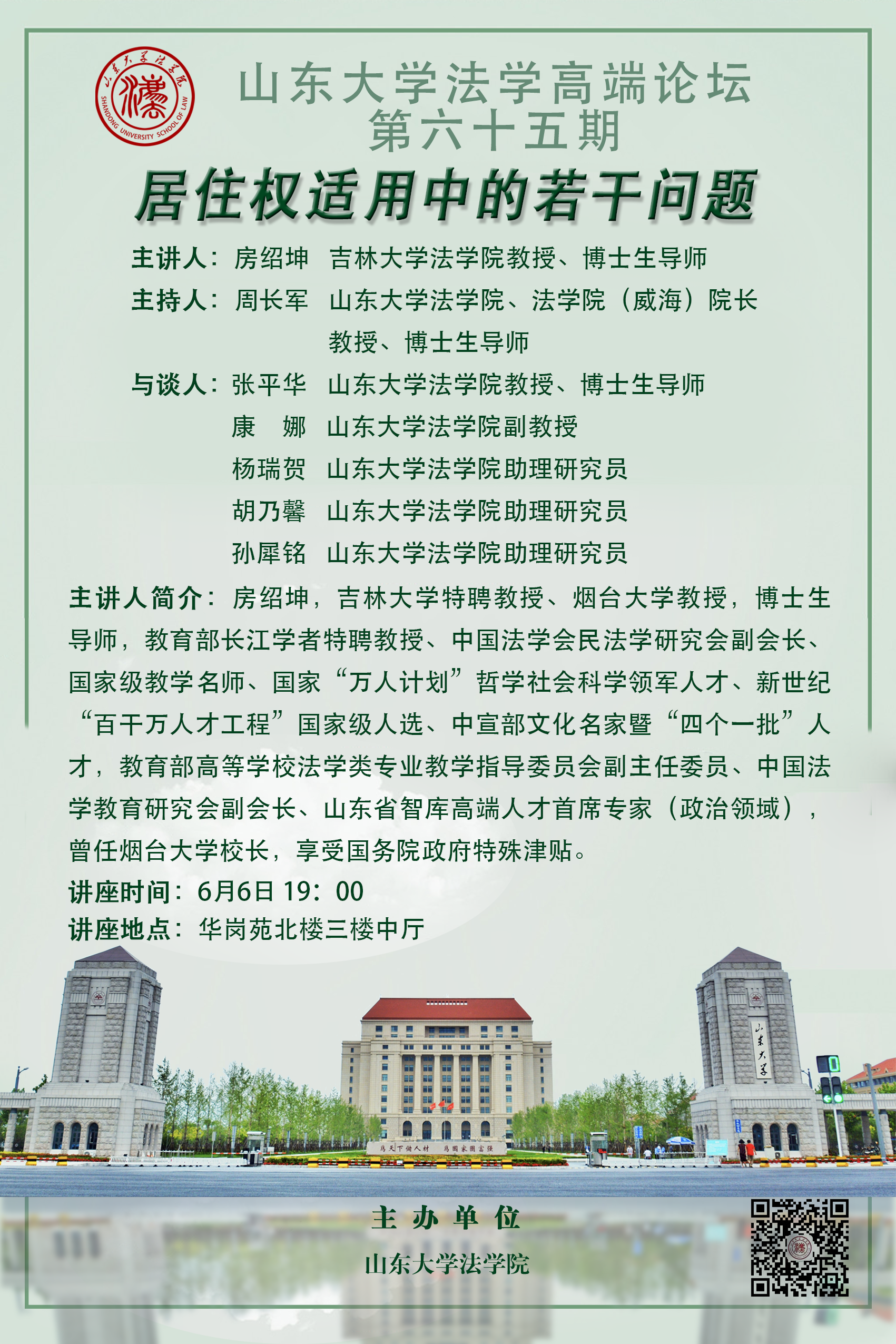 講座預(yù)告 | 山東大學法學高端論壇第六十五期:居住權(quán)適用中的若干問題