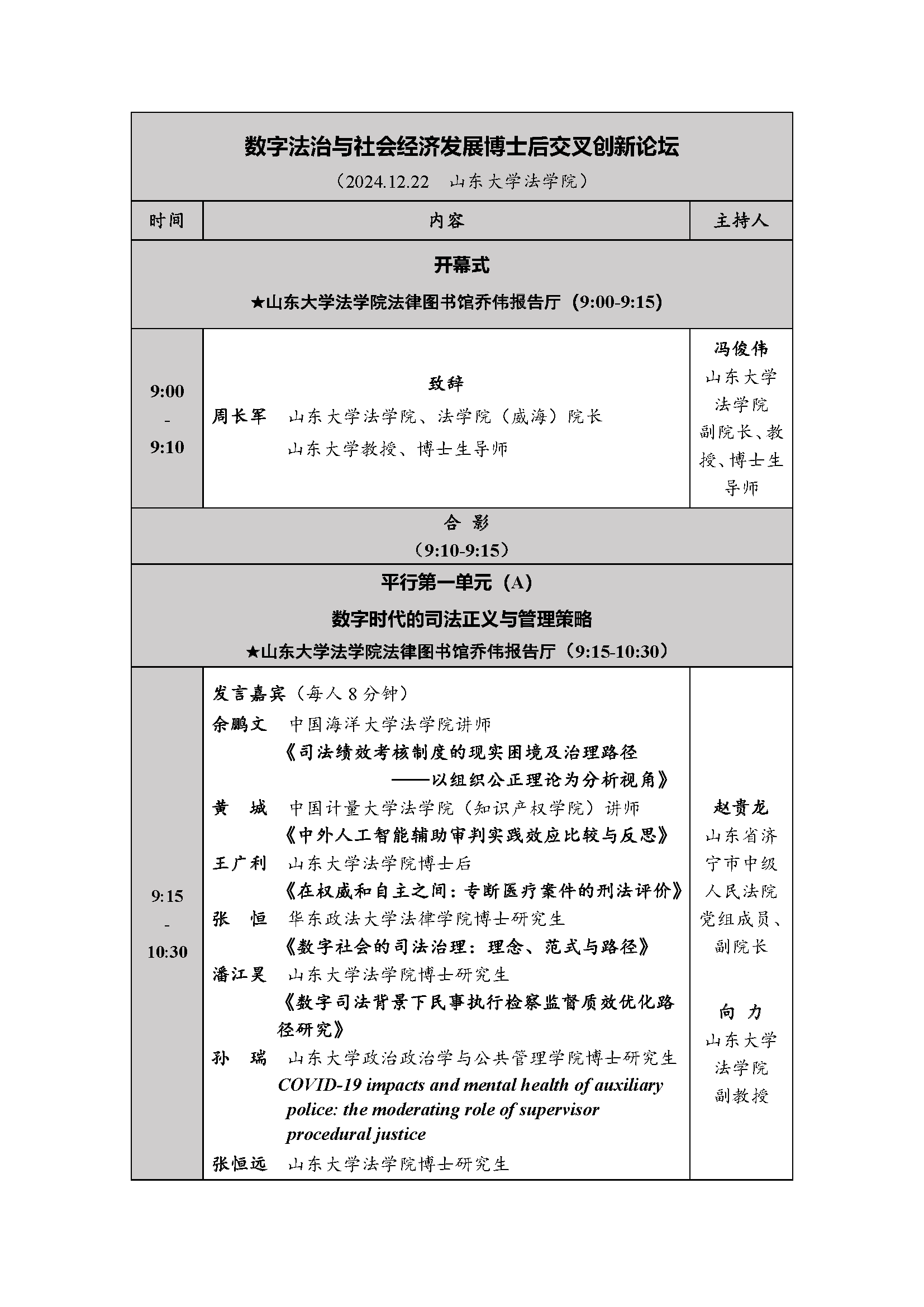 會議議程|數(shù)字法治與社會經(jīng)濟發(fā)展博士后交叉創(chuàng)新論壇