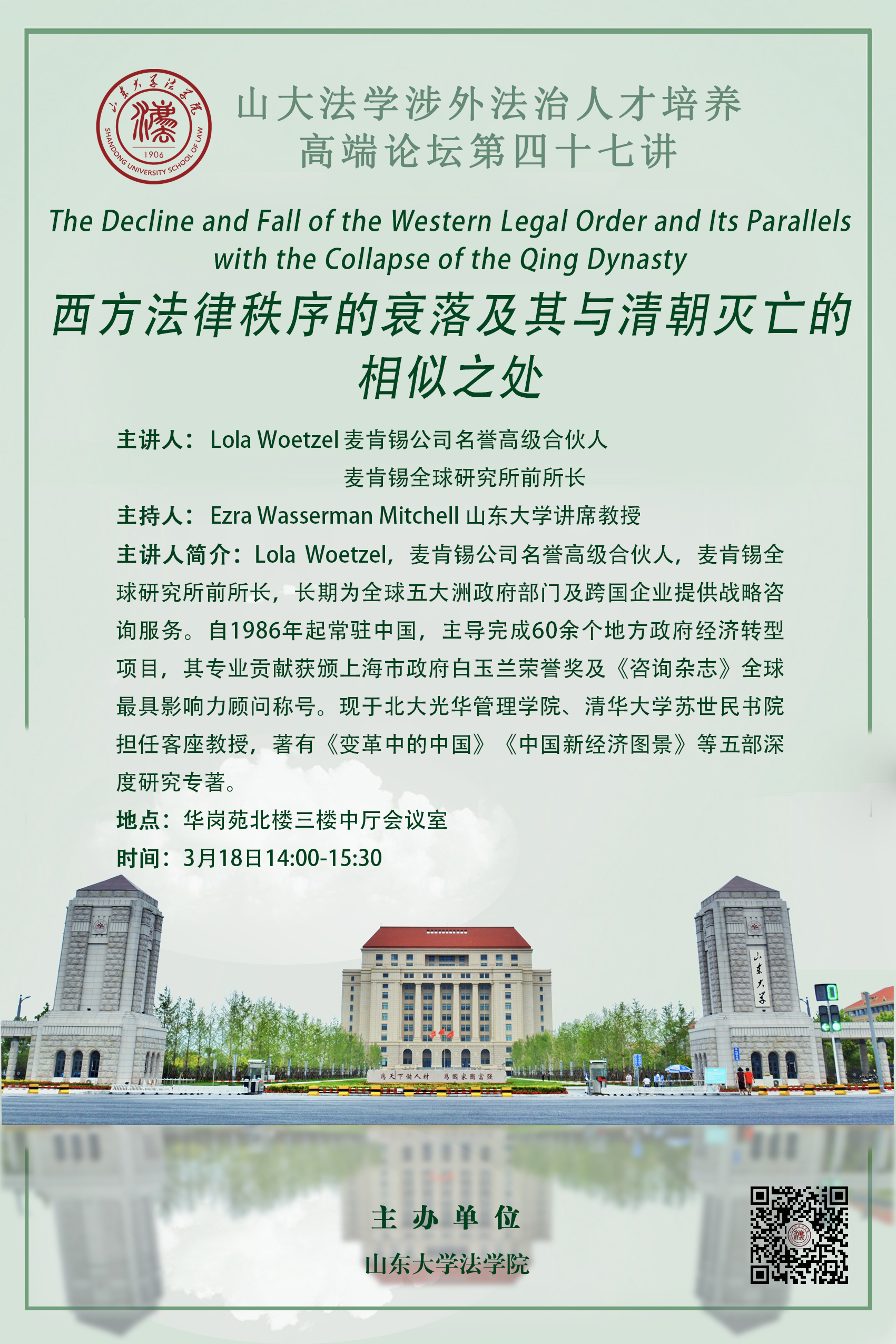 講座預(yù)告|山大法學(xué)涉外法治人才培養(yǎng)高端論壇第四十七講:西方法律秩序的衰落及其與清朝滅亡的相似之處