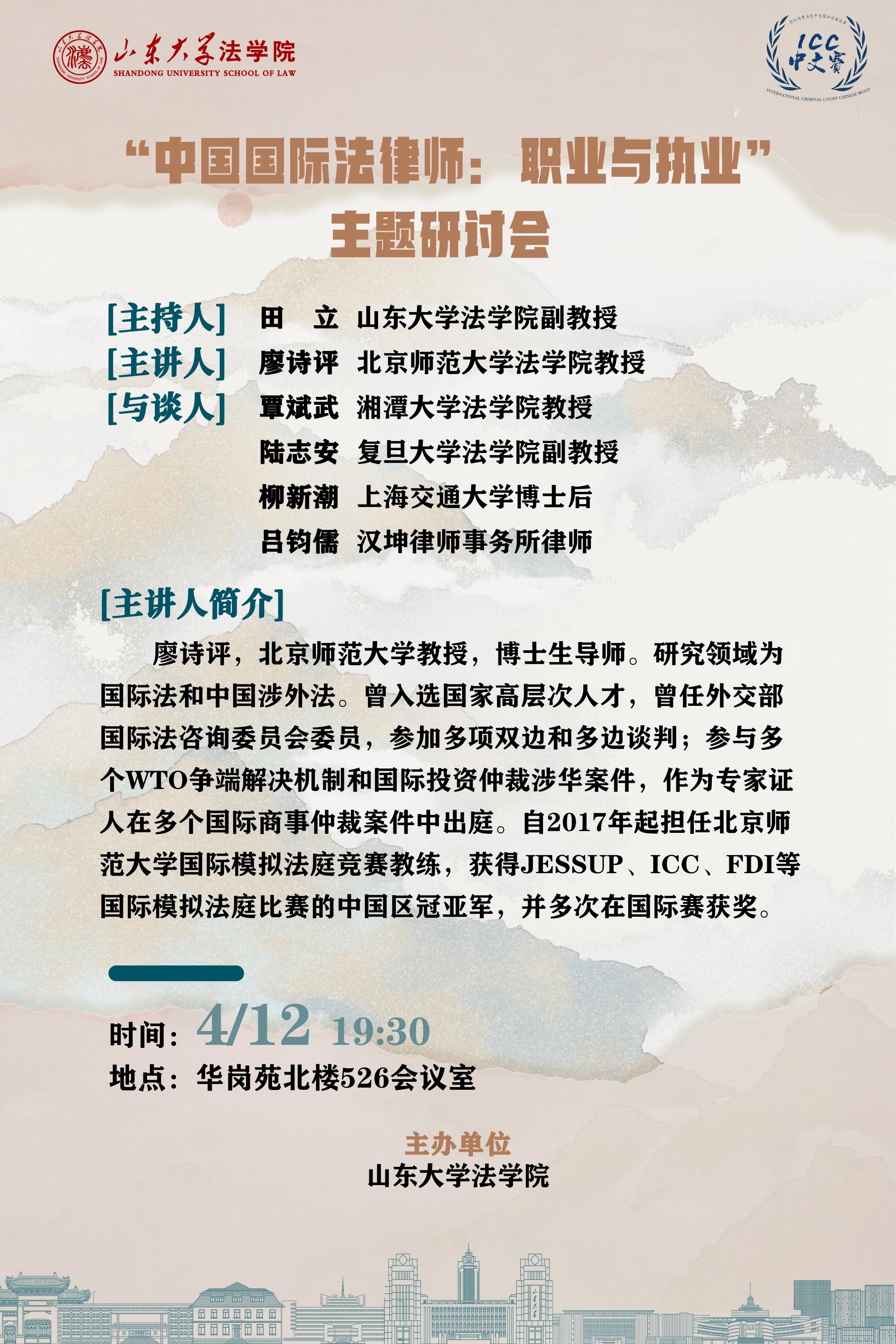 講座預(yù)告|“中國國際法律師:職業(yè)與執(zhí)業(yè)” 主題研討會