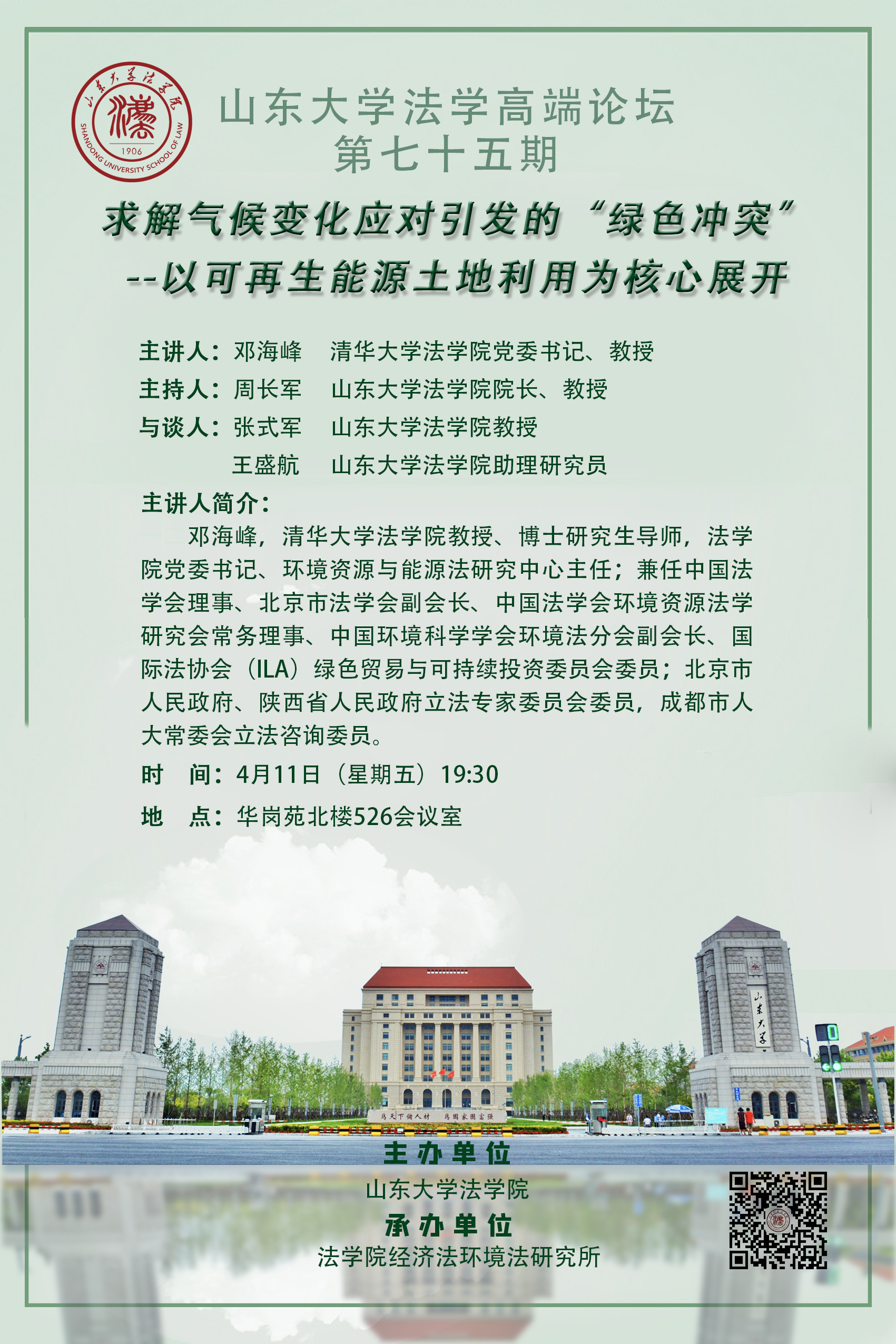 講座預告|山東大學法學高端論壇第七十五期:求解氣候變化應對引發(fā)的“綠色沖突”——以可再生能源土地利用為核心展開