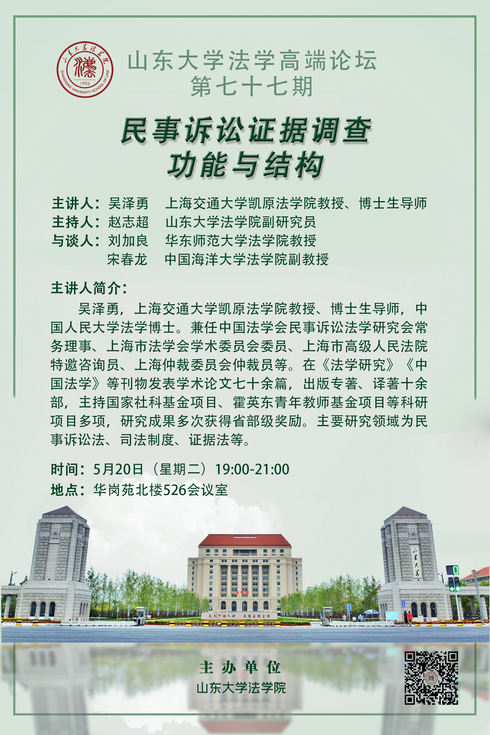 講座預(yù)告 | 山東大學法學高端論壇第七十七期:民事訴訟證據(jù)調(diào)查功能與結(jié)構(gòu)