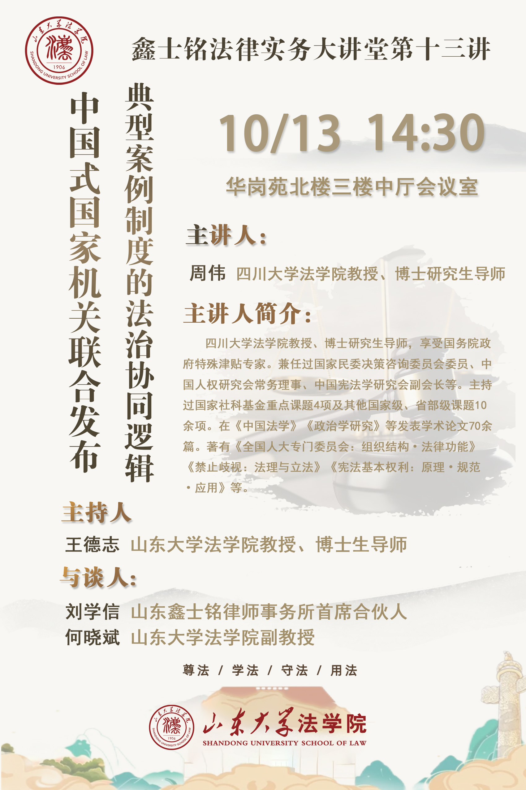 講座預告 | “鑫士銘法律實務大講堂”第十三期:中國式國家機關聯(lián)合發(fā)布典型案例制度的法治協(xié)同邏輯
