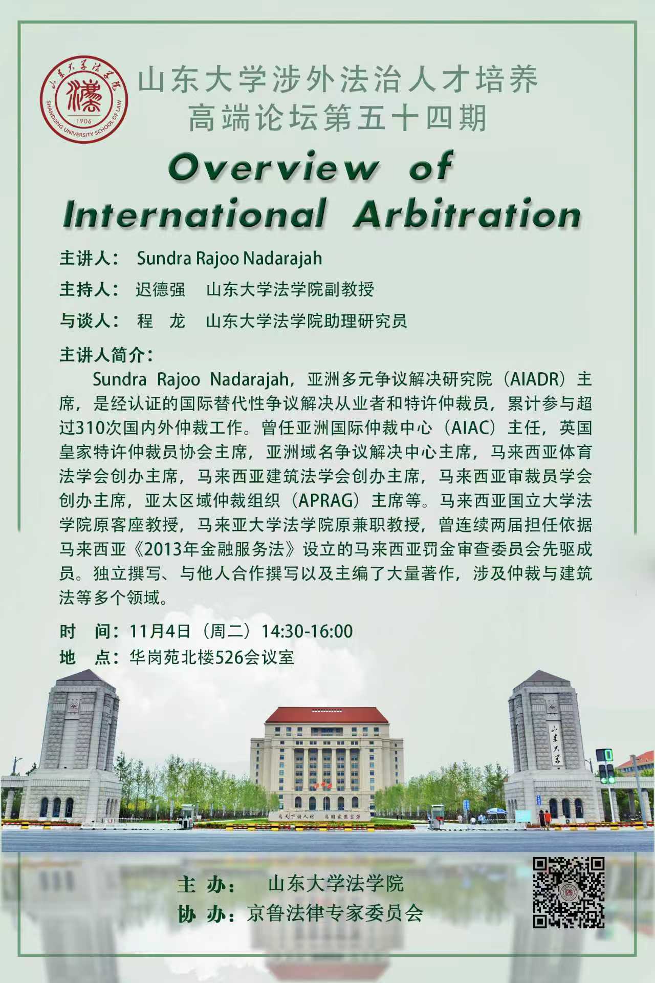 講座預(yù)告 | 山東大學(xué)涉外法治人才培養(yǎng)高端論壇第五十四期: Overview of International Arbitration