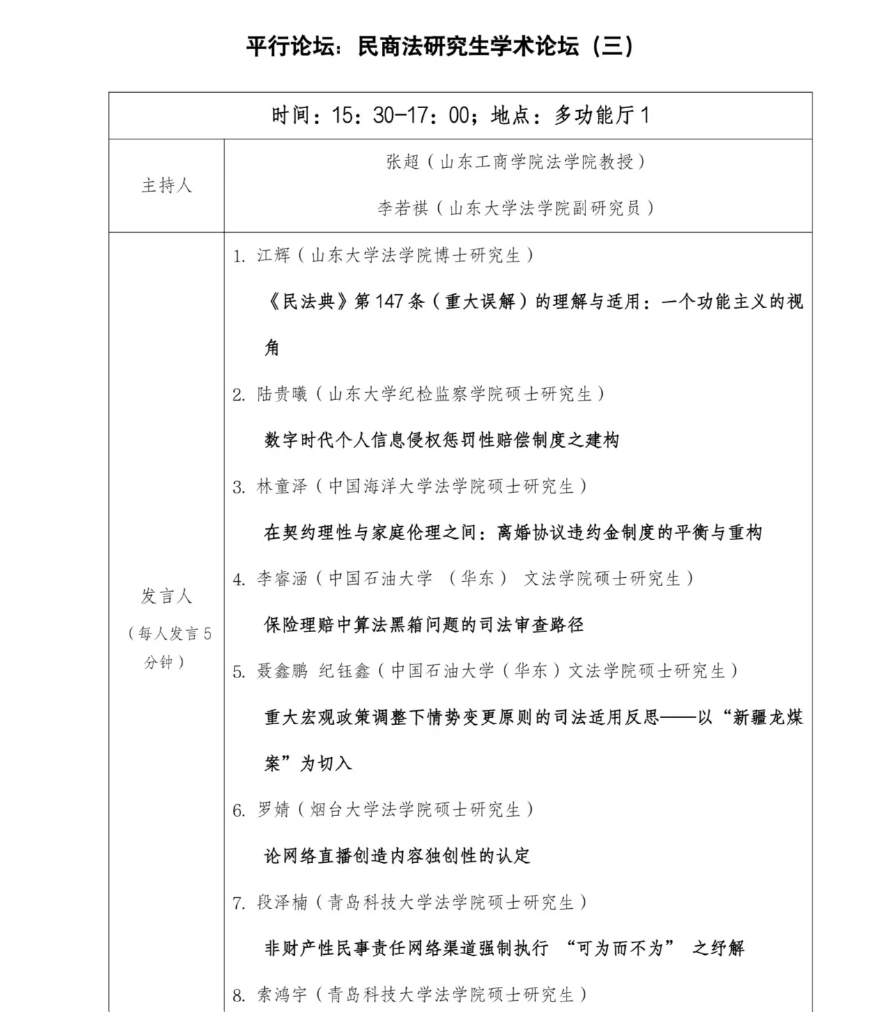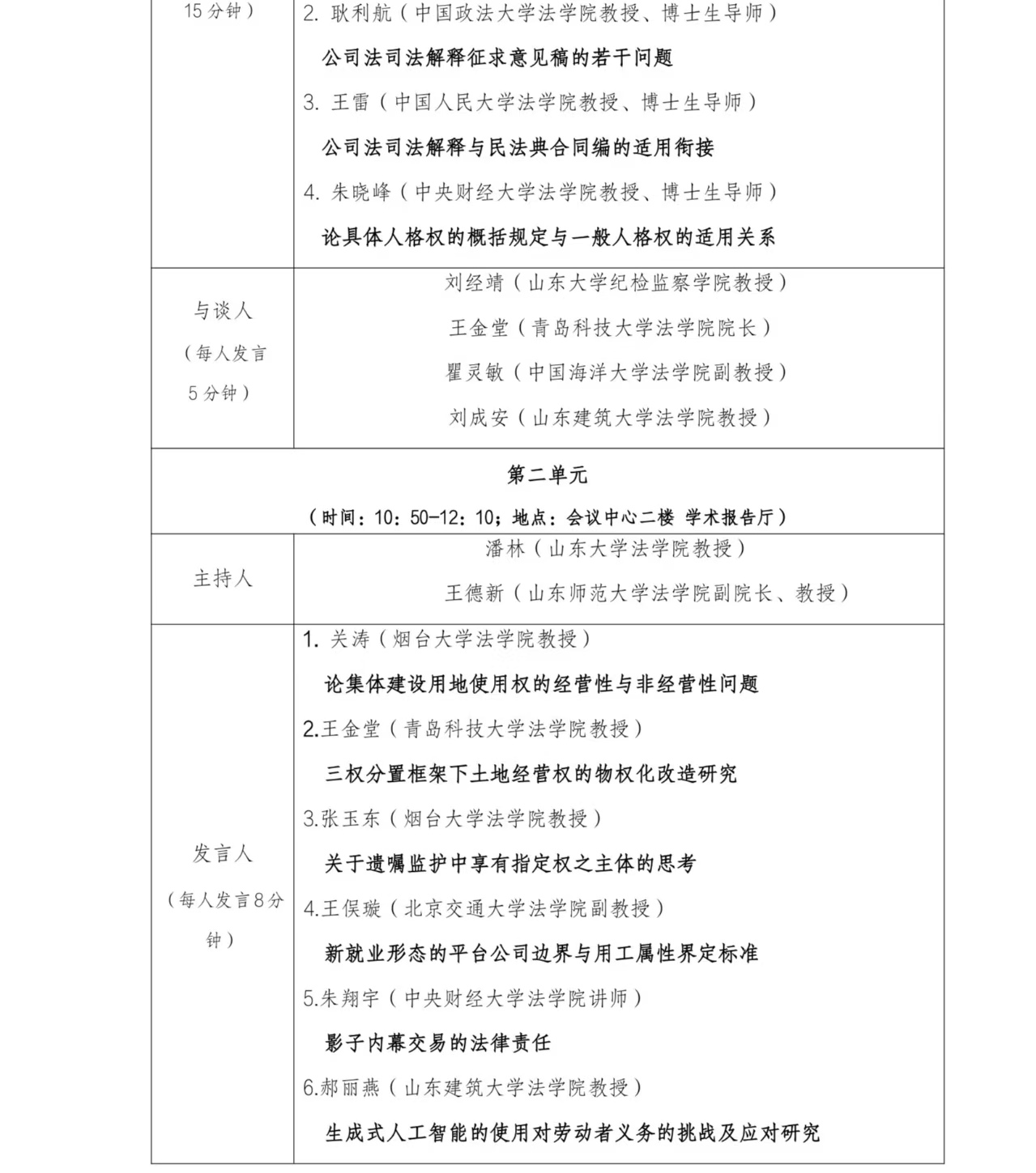 會議議程 | 山東省法學會民商法學研究會第八次會員大會暨2025年學術會議