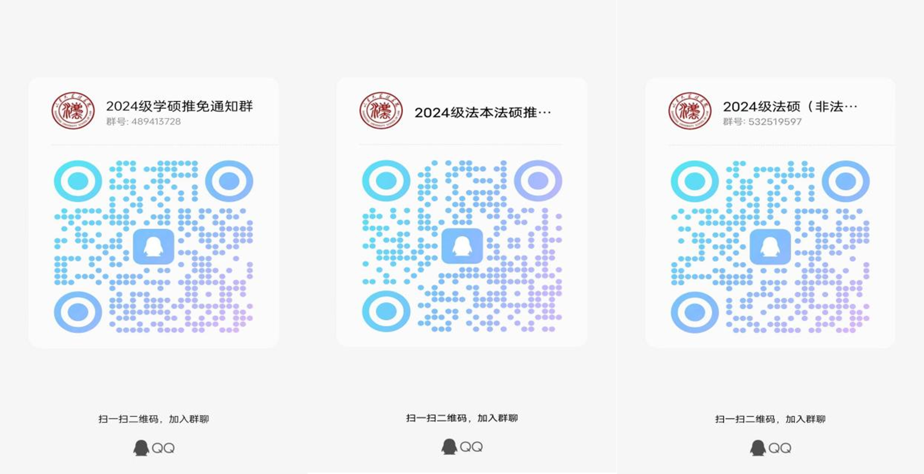 為了更好地溝通聯(lián)系和組織復(fù)試工作,確定來校參加復(fù)試考生請(qǐng)于9月22日15:00前加入復(fù)試QQ群。QQ群設(shè)置了信息驗(yàn)證,入群驗(yàn)證為:本人姓名+手機(jī)號(hào)碼后6位。進(jìn)群后,所有考生應(yīng)將“群昵稱”修改成“報(bào)考專業(yè)+姓名”。待所有考生入群后,我院將正式啟用QQ群發(fā)布消息,請(qǐng)考生時(shí)刻關(guān)注群通知。