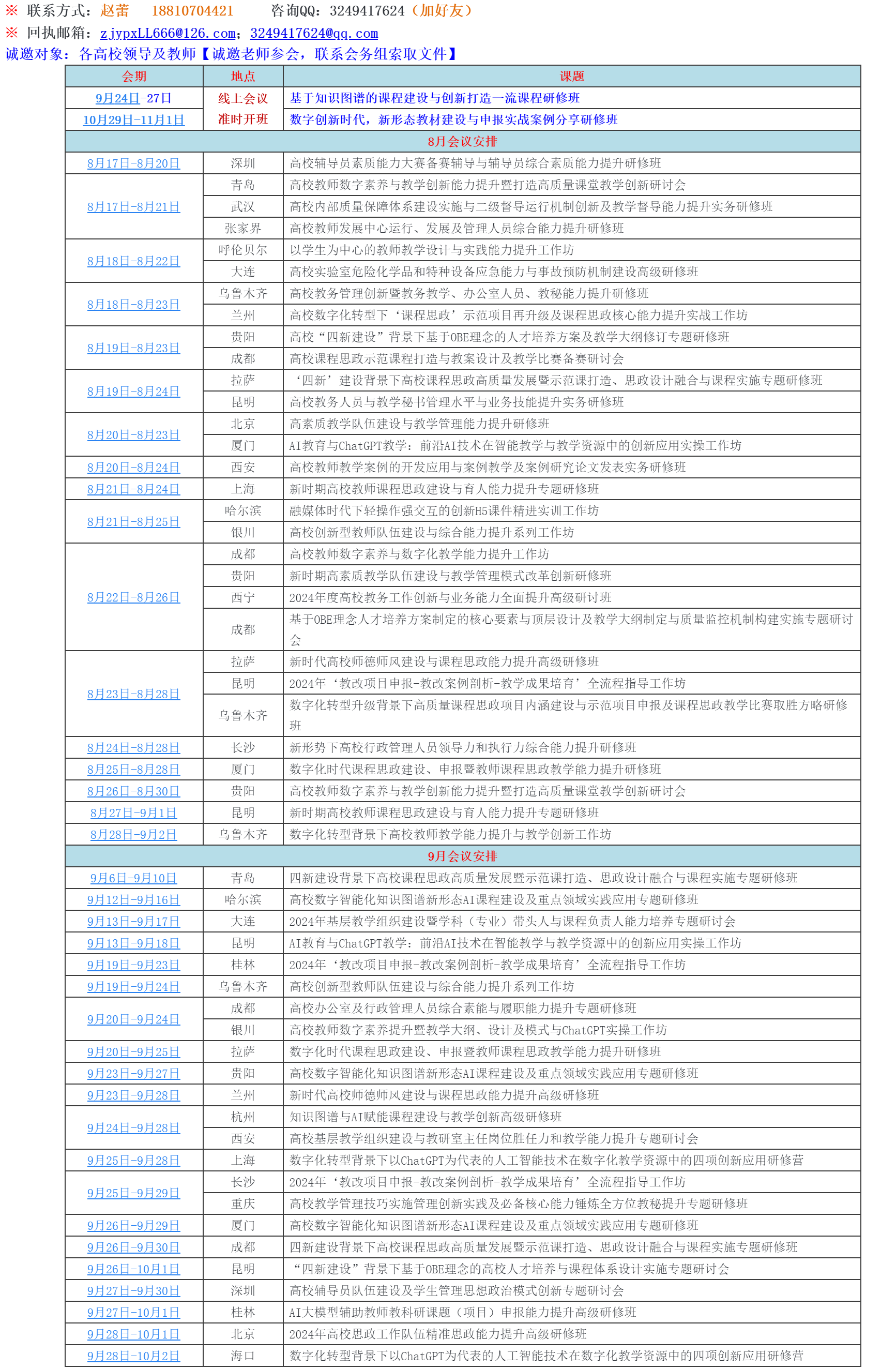 中教國(guó)培師資教育科技發(fā)展中心暑期8-9月教師培訓(xùn)一覽表