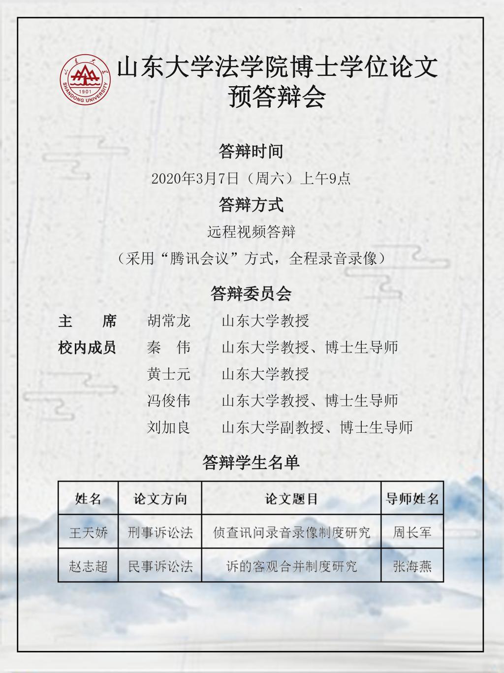 2020年上半年博士預(yù)答辯公告(訴訟法學(xué))