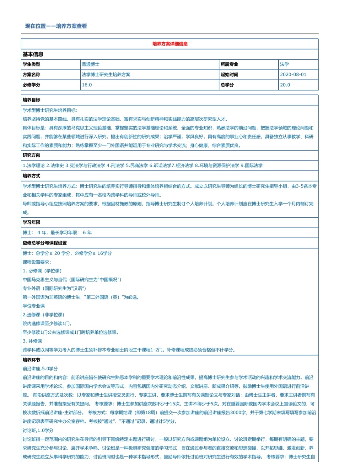山東大學(xué)法學(xué)院攻讀學(xué)術(shù)型博士學(xué)位研究生培養(yǎng)方案