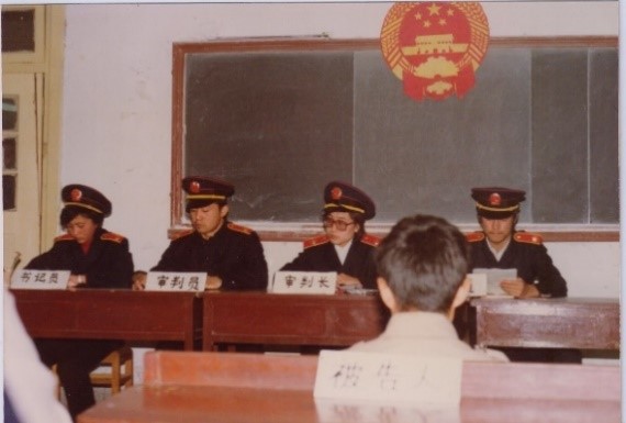 ①上圖為“庭審現(xiàn)場”,法律系八五級法學(xué)班馬建紅作為“公訴人”正在宣讀“起訴書”。②下圖左為模擬法庭現(xiàn)場。③正在認(rèn)真聽“審”的中學(xué)生