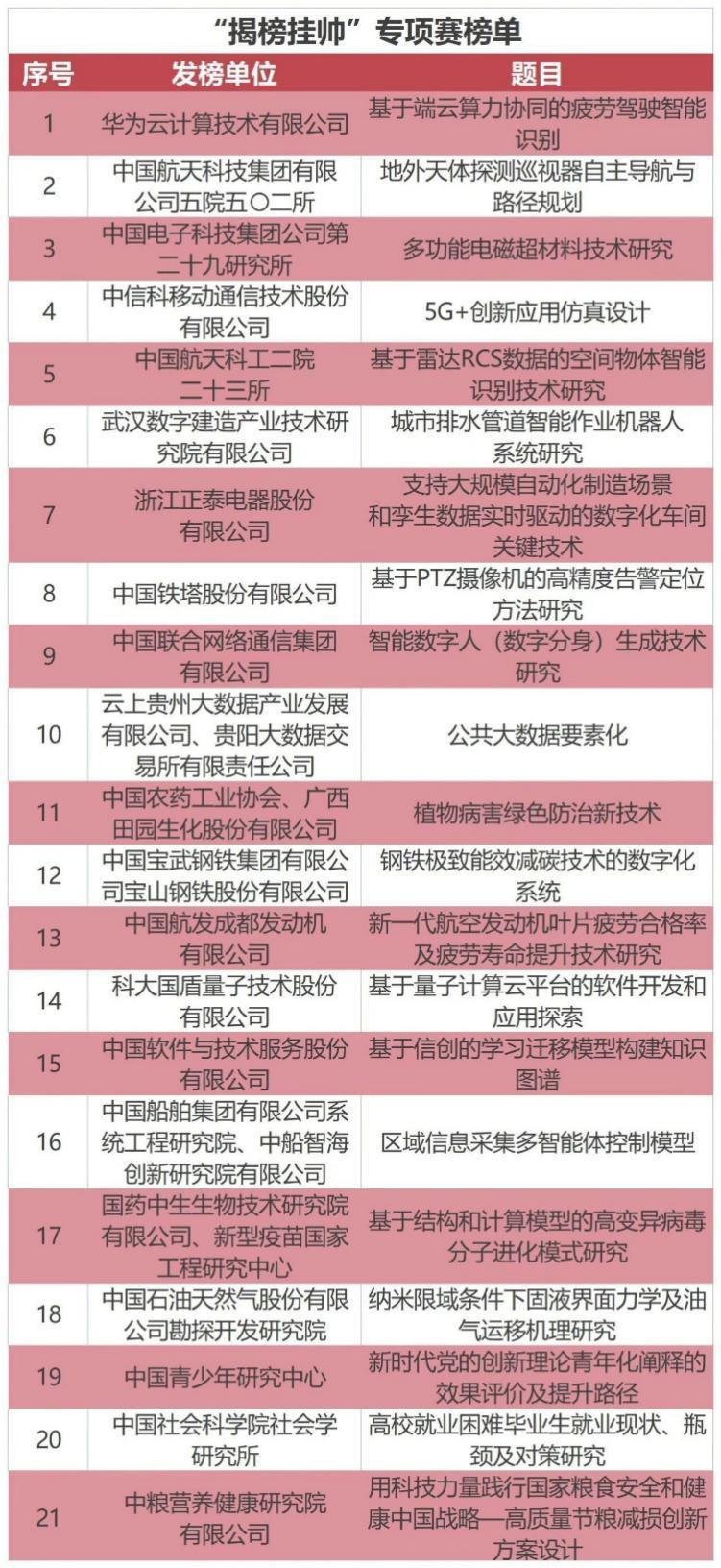 三、“揭榜掛帥”專項(xiàng)賽榜單