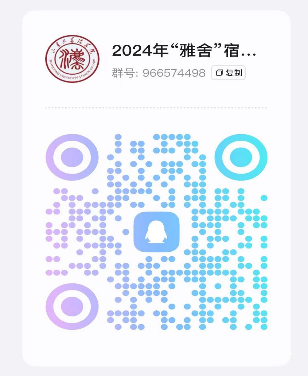 3.請(qǐng)參與評(píng)比的宿舍長(zhǎng)在發(fā)送報(bào)名郵件后加入活動(dòng)聯(lián)絡(luò)群(群號(hào):966574498或掃碼進(jìn)入),后續(xù)通知將在群內(nèi)發(fā)布。