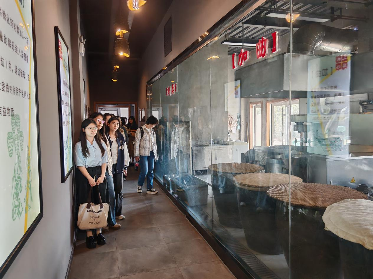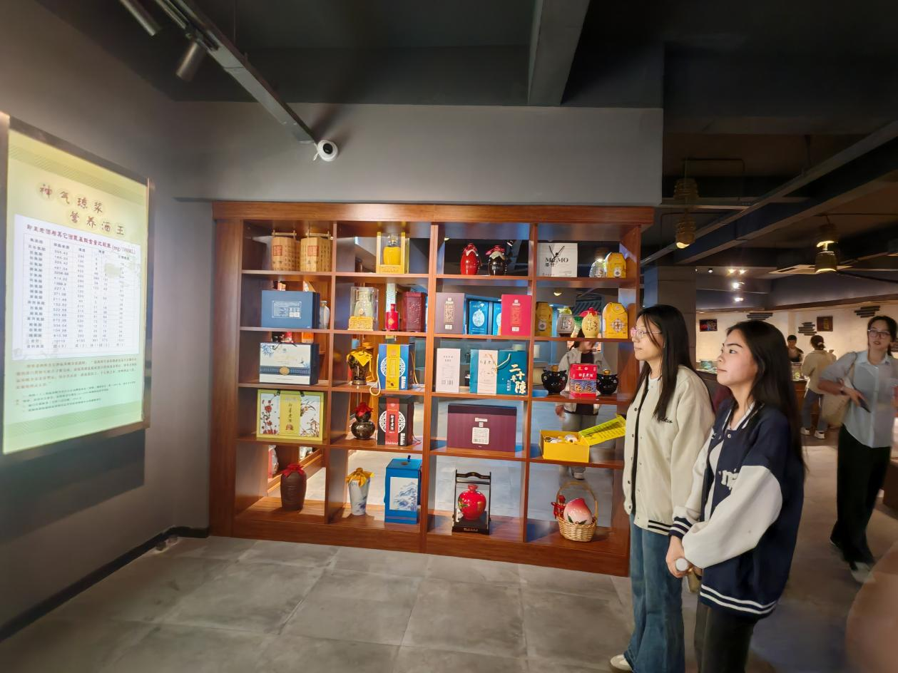 在博物館講解員的帶領下,團支部成員依次參觀了博物館的各個展區(qū)。博物館共分三層:一層為歷史文化展區(qū),通過豐富的圖文資料與實物展陳,介紹了即墨老酒從春秋戰(zhàn)國至現(xiàn)代的發(fā)展歷程;二層為傳統(tǒng)工藝展區(qū),展示了老酒釀造的工具、流程及“古遺六法”的具體操作,同學們近距離觀察了發(fā)酵缸、木榨機等傳統(tǒng)器具,深刻體會到傳統(tǒng)釀造的嚴謹與精細;三層為現(xiàn)代創(chuàng)新展區(qū),呈現(xiàn)了即墨老酒在當代的品牌發(fā)展與社會貢獻。通過系統(tǒng)參觀,同學們對即墨老酒的歷史價值、工藝精髓和文化內涵有了更加全面的認識。