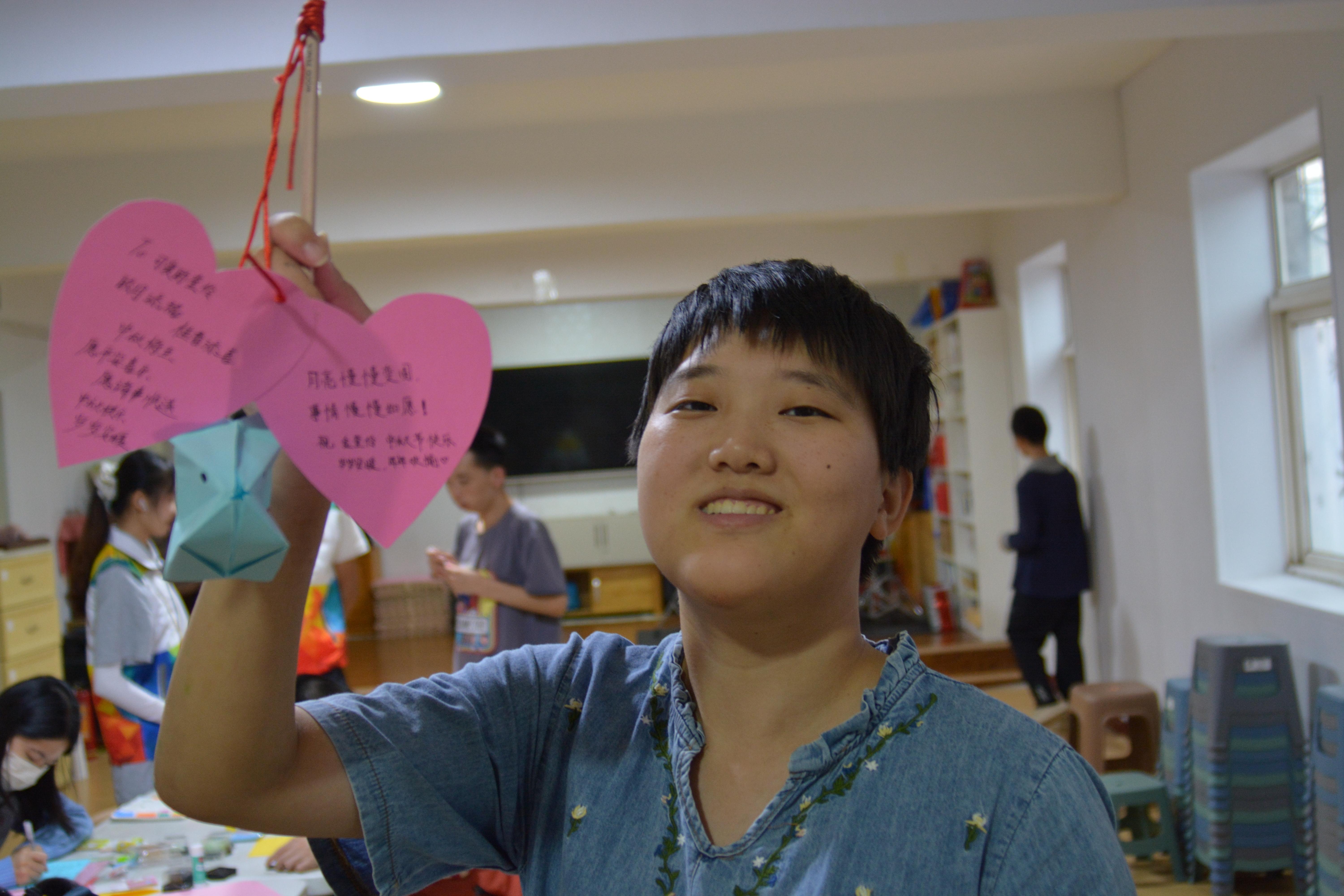 燈籠制作環(huán)節(jié)中,志愿者與孩子們共同折疊、剪裁、裝飾,協(xié)作完成了一盞盞五彩繽紛的彩燈。看到成品時,孩子們紛紛露出燦爛的笑容。