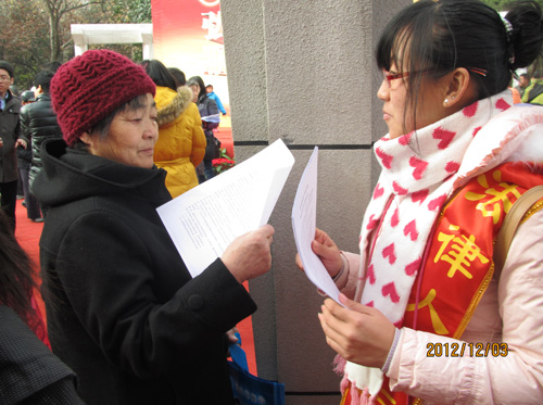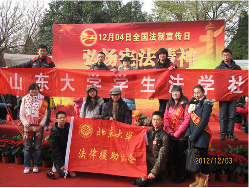 2012123日星期一,普法宣傳日的前一天,由濟南市歷下區(qū)司法局、濟南市電視臺生活與法主辦的12.4普法宣傳在燕子山普法主題公園如火如荼地展開。本次活動的主題為弘揚憲法精神,服務(wù)科學(xué)發(fā)展。法學(xué)社一行人于九時左右到達活動地點,開展普法宣傳活動。