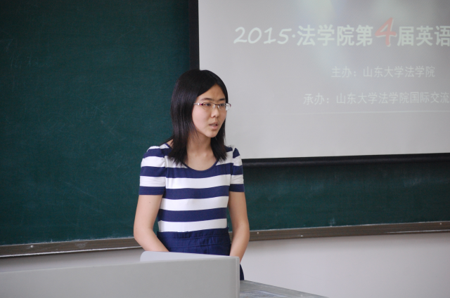517日下午,法學(xué)院第四屆英語(yǔ)演講比賽決賽于洪家樓校區(qū)法新樓順利舉辦。本次大賽由法學(xué)院國(guó)際合作交流部承辦,張晏瑲教授、魏華副教授、李潔博士等應(yīng)邀擔(dān)任決賽評(píng)委,2014級(jí)本科生補(bǔ)政洋擔(dān)任決賽主持。