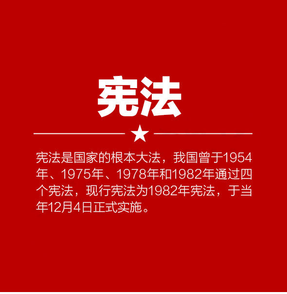 憲法是國(guó)家的根本大法,我國(guó)曾于1954年、1975年、1978年和1982年通過(guò)四個(gè)憲法,現(xiàn)行憲法為1982年憲法,于當(dāng)年12月4日正式實(shí)施。