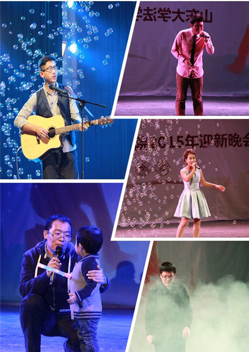 頒獎典禮結(jié)束后,迎新晚會正式開始。學生會精心制作的開場視頻,帶領同學們回顧軍訓生活并表達了專業(yè)課老師、輔導員老師和學長學姐對新生的美好祝愿。接下來,“草莓地”樂隊返場表演本次晚會的主題曲《真的愛你》拉開精彩序幕。隨后,動感開場舞《Hold it against me》點燃全場觀眾們的熱情。相聲《有一說一》詼諧有趣,談笑間彰顯機智與鋒芒。法學院的“歌神”們帶來了中文歌曲串燒,展現(xiàn)了法學院學生們多才多藝的一面。國際教育學院的同學們表演了小品《漢語差真可怕》,表達了異國友人們對漢語的熱愛。然后是一曲飛揚灑脫的二胡《賽馬》。舞蹈《天山兒女》展現(xiàn)了維吾爾族姑娘小伙兒們的精湛舞藝。綜合技擊協(xié)會的《武動乾坤》和研究生學長的街舞表演令同學們充分領略了“翩若驚鴻,矯若游龍”的身體韻律。外文歌曲串燒中,江照信老師和兒子的溫情互動,使全場洋溢著愛與溫馨,并將晚會推向最后的高潮。青春活力的《啦啦操》與其后上演的古典節(jié)目《青花瓷》形成強烈的感官沖擊。最終法學院學生會帶來一首大合唱《愛,因為在心中》,為本次晚會畫上了圓滿的句號。晚會期間,在主持人的帶領下進行了兩次抽獎活動,全程微信大屏幕線上互動,一輪又一輪精彩high翻全場,給觀眾留下了難忘的回憶。