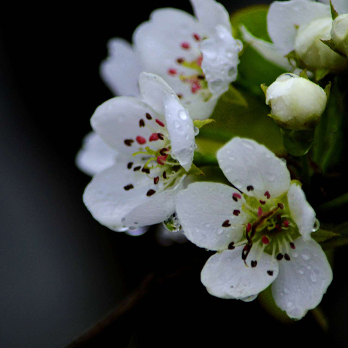 一枝帶雨的白花,猶似含情凝涕的美人,只那樣靜靜地綻放,默默地吐露著春的氣息。
