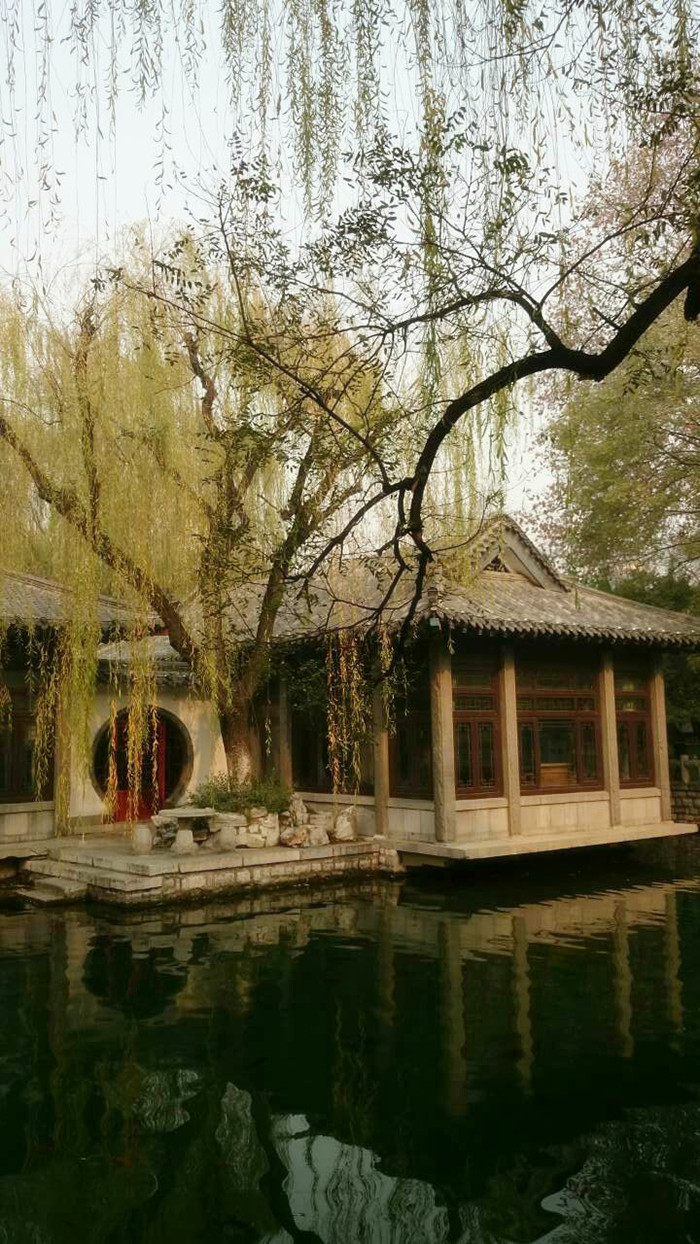 明朝石畔弄影,今世與你成雙。日暮霞光遠(yuǎn),細(xì)柳隨風(fēng)潛。