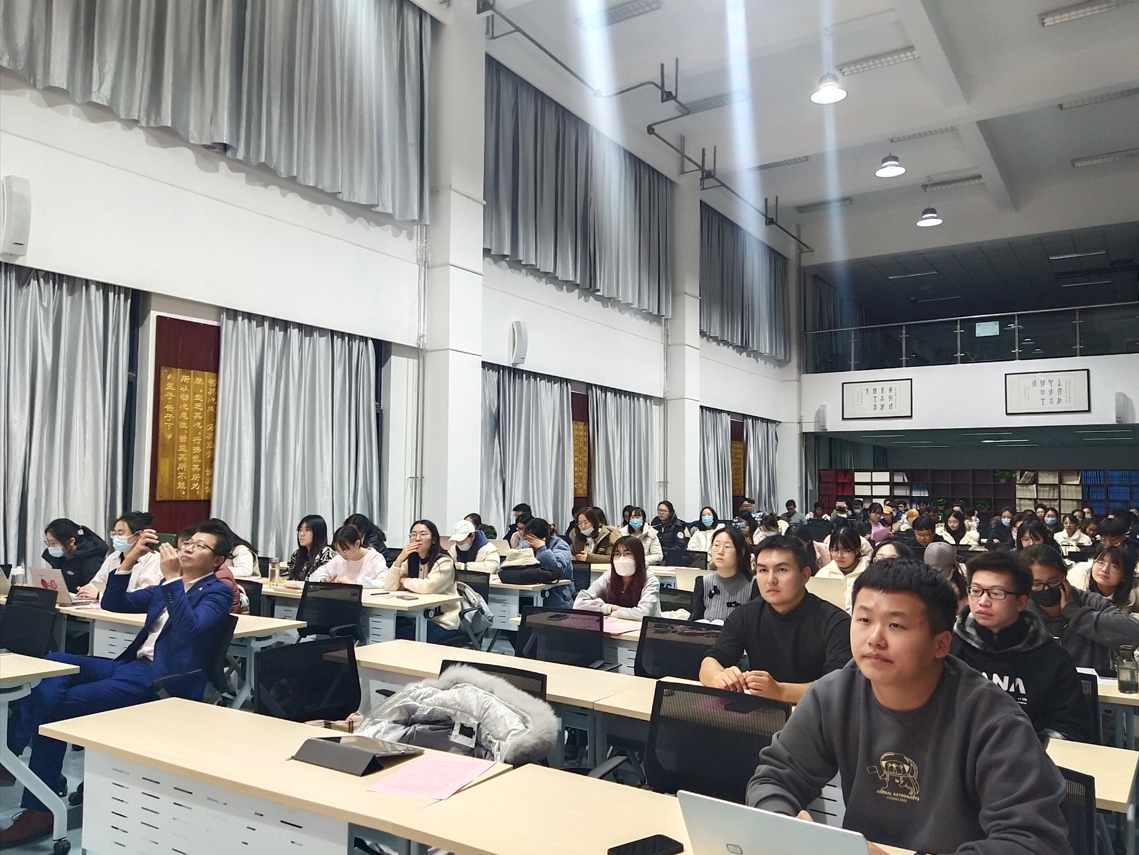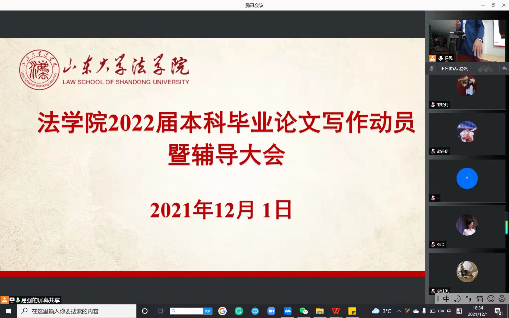 為貫徹落實山東大學2022屆本科畢業(yè)論文(設計)工作,提高學生的論文寫作水平和寫作質量,12月1日,法學院在華崗苑舉行2022屆本科畢業(yè)論文寫作動員暨輔導大會。法學院院長助理于永寧副教授作動員講話、向力副教授進行寫作輔導報告、本科教務辦公室范毅強老師對論文寫作各階段的任務及具體時間節(jié)點進行說明,法學2018級畢業(yè)班學生在線下、法學英語雙學位班2017級畢業(yè)班學生在線上參加輔導大會。
