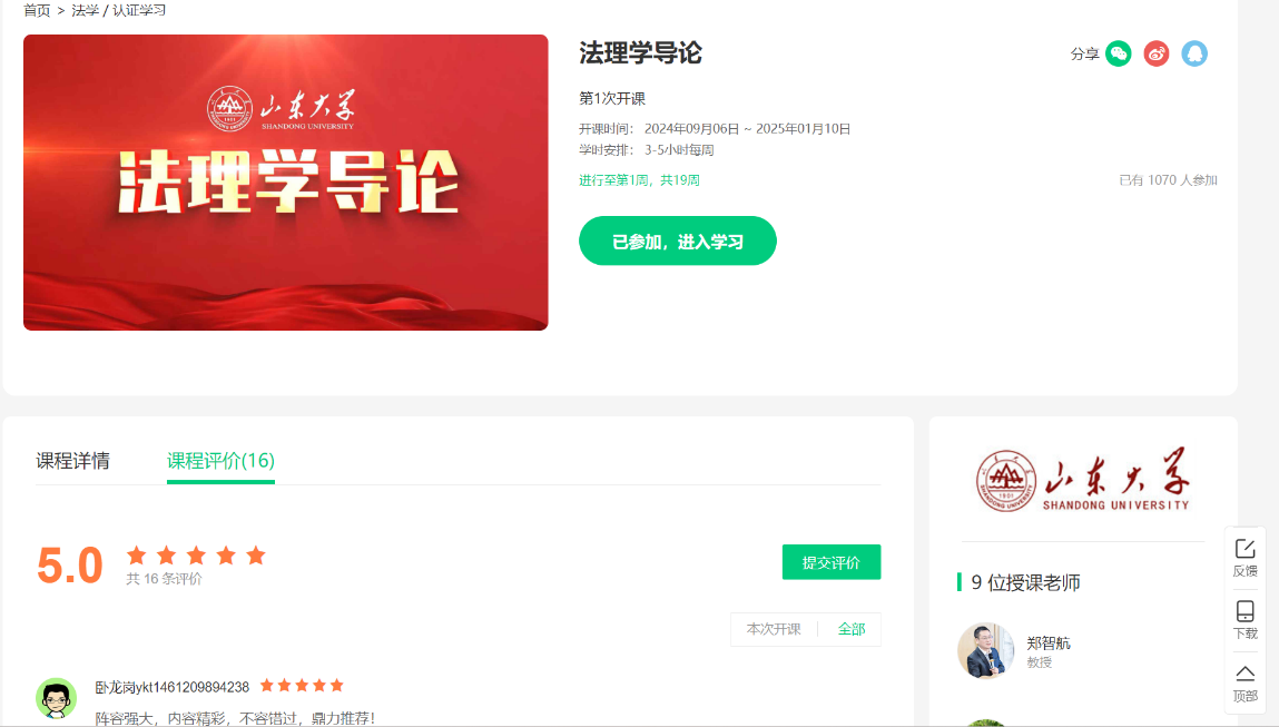 近日,由山東大學(xué)法學(xué)院、吉林大學(xué)法學(xué)院和南京大學(xué)法學(xué)院聯(lián)合錄制的慕課《法理學(xué)導(dǎo)論》正式登錄“中國(guó)大學(xué)MOOC網(wǎng)”。課程上線后,迅速吸引國(guó)內(nèi)外眾多各高校師生與社會(huì)人士參與選課,并一致給予高度評(píng)價(jià),在法學(xué)界引起廣泛反響。