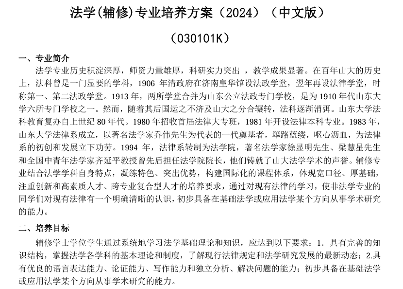 法學(輔修)專業(yè)培養(yǎng)方案(2024)